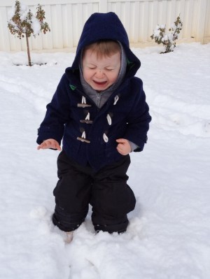 So then because I’m such a kind and loving mother I set Lincoln down in the middle of the snow to see what he would do.Â