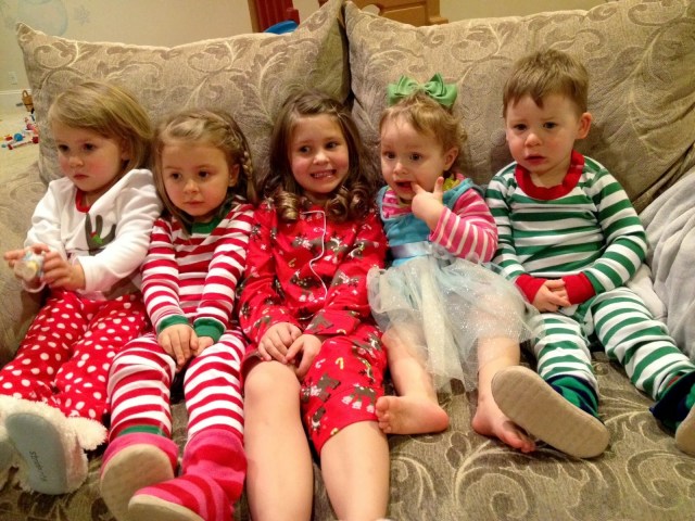 Madilyn (5), Isabelle (4), Jakob (almost 4), Kira (3), Lincoln (2), Margo (19 mo), Allison (15 mo), Bennett (9 mo), and little Quinn (5 mo)