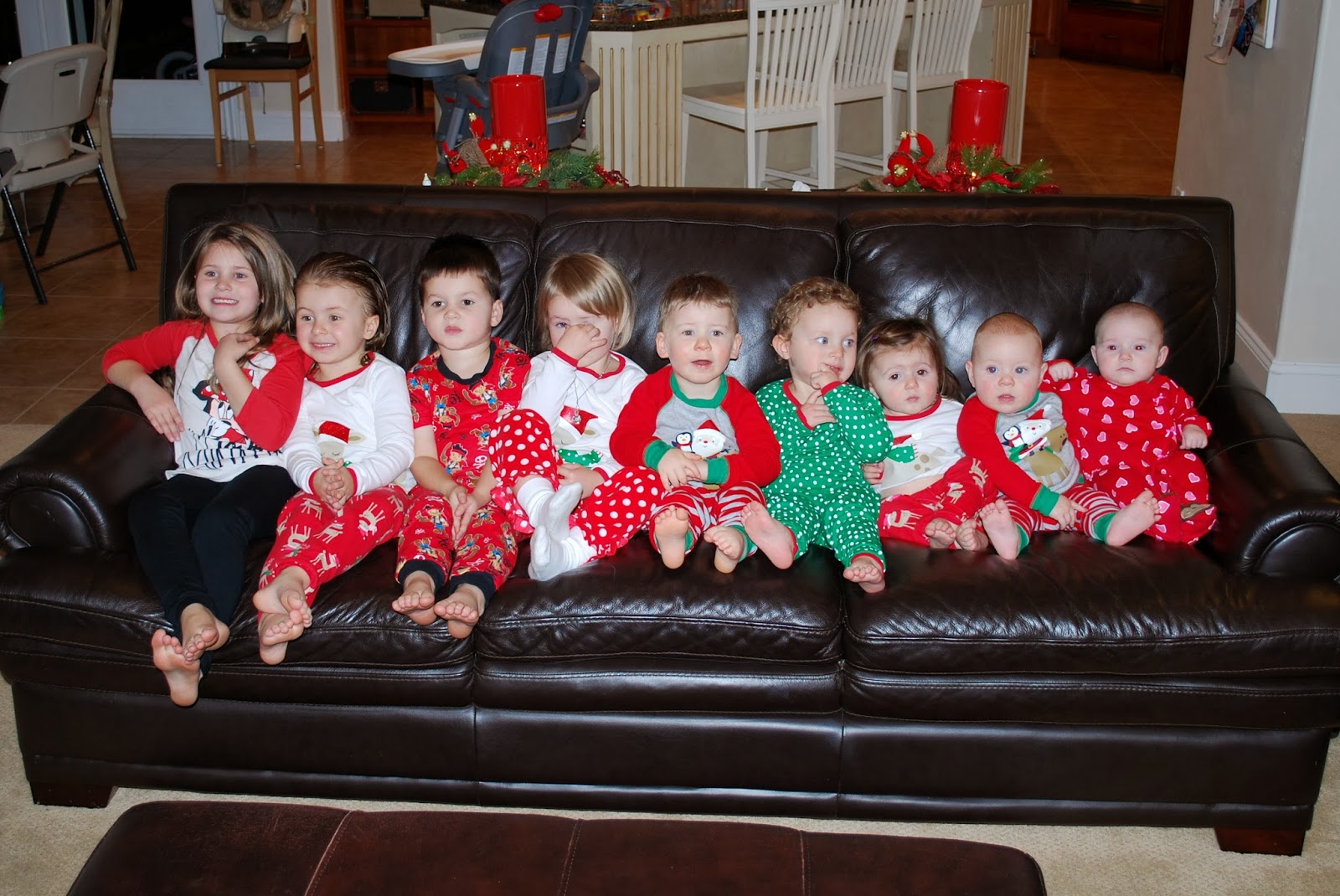 Madilyn (5), Isabelle (4), Jakob (almost 4), Kira (3), Lincoln (2), Margo (19 mo), Allison (15 mo), Bennett (9 mo), and little Quinn (5 mo)