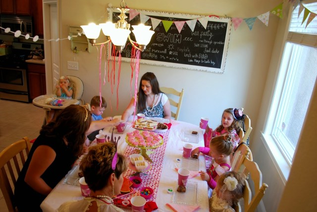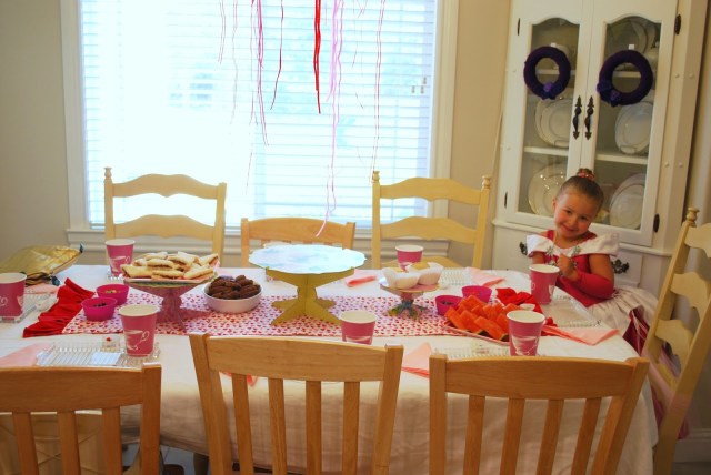 When we made our summer bucket list at the beginning of June, she came up with this extravagant idea to host a tea party complete with cookies and dress ups and “reservations.” So she made some “reservations” (invitations) and sent them out. She helped me pick out decorations from our stash, set the table with real “breakable plates.” Everyone came in their fanciest attire.