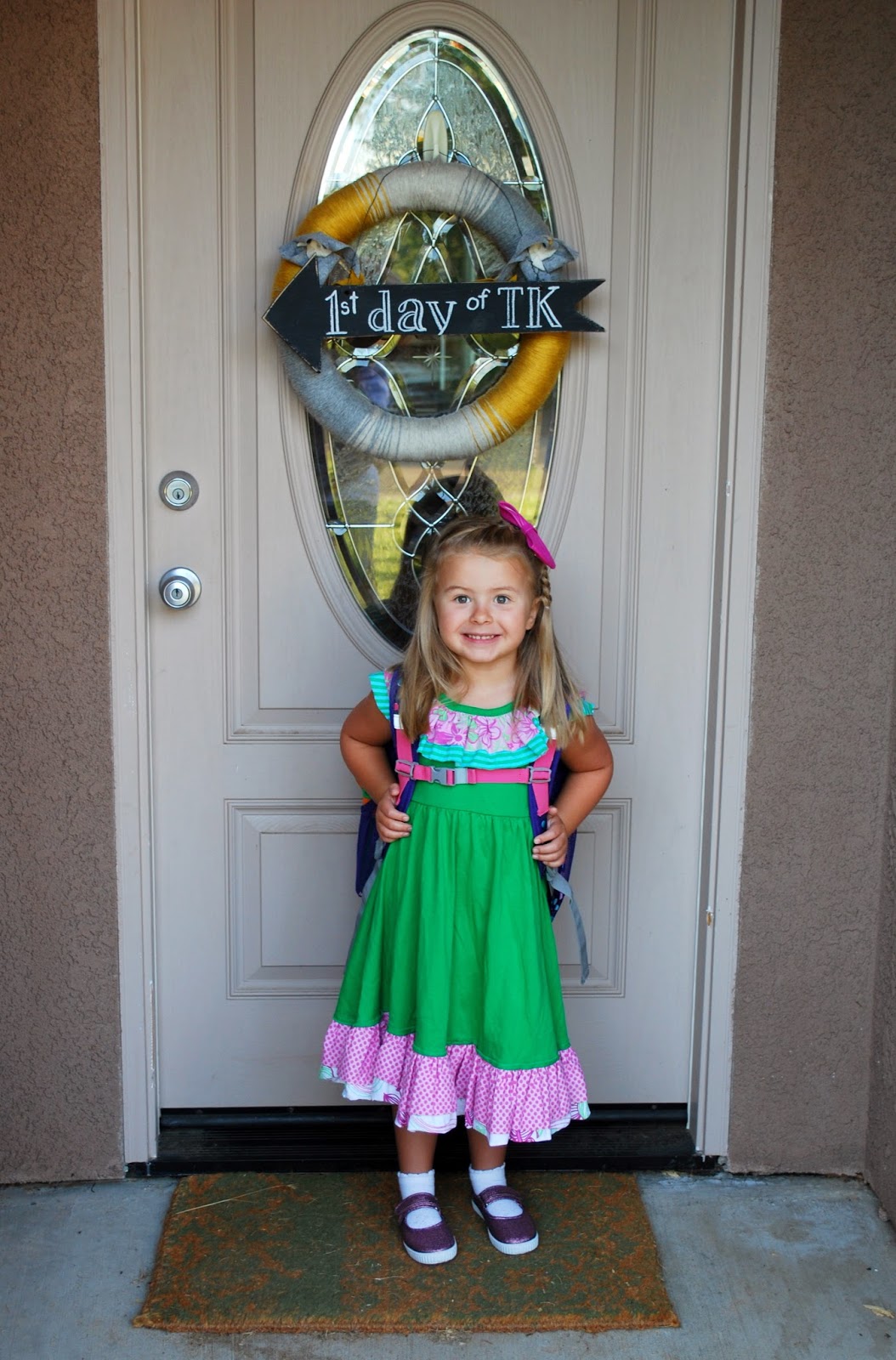 The night before school started, she came in our room multiple times in the night just to see if it was time to get up and get ready- she was so excited. She ate breakfast and I packed her a lunch and we did her hair and put on her special outfit. Snapped a few pictures, and loaded her up in the car. Lincoln was still sleeping so Jazz got him up while I ran across town. I didn’t know how long I needed to stay, would she cry, would she be totally fine, etc so we elected to leave the toddler at home because, cmon we all know Lincoln.