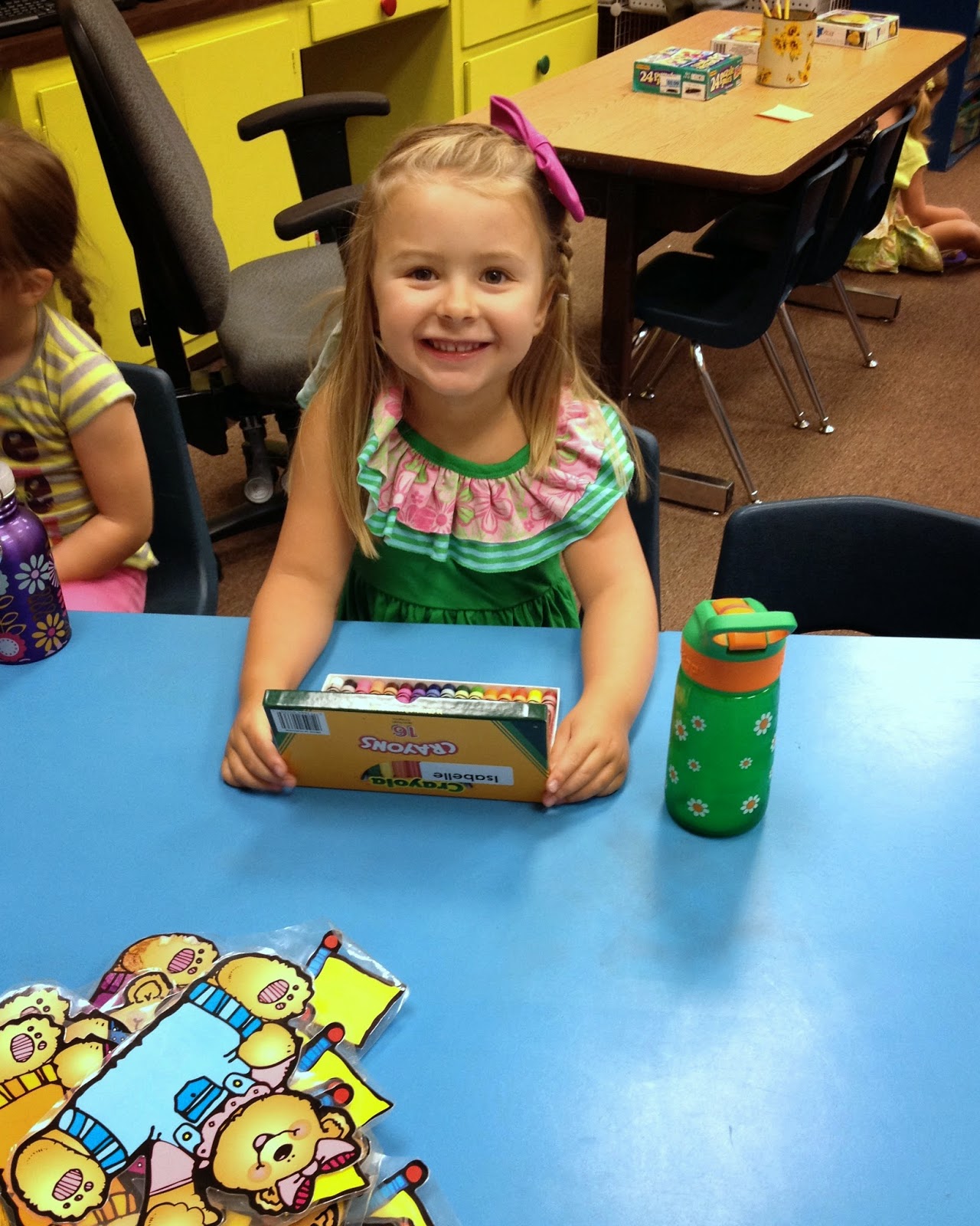 I held her little hand and she walked next to me with her backpack and lunch box and my heart almost exploded. I was so proud of her and excited for her but also a little sad that we were HERE already. We got to her class and found her name on her table. She said hello to a few new friends and then just like that, it was time for me to leave my first born in a room full of strangers. Such a weird concept.
