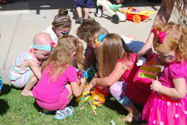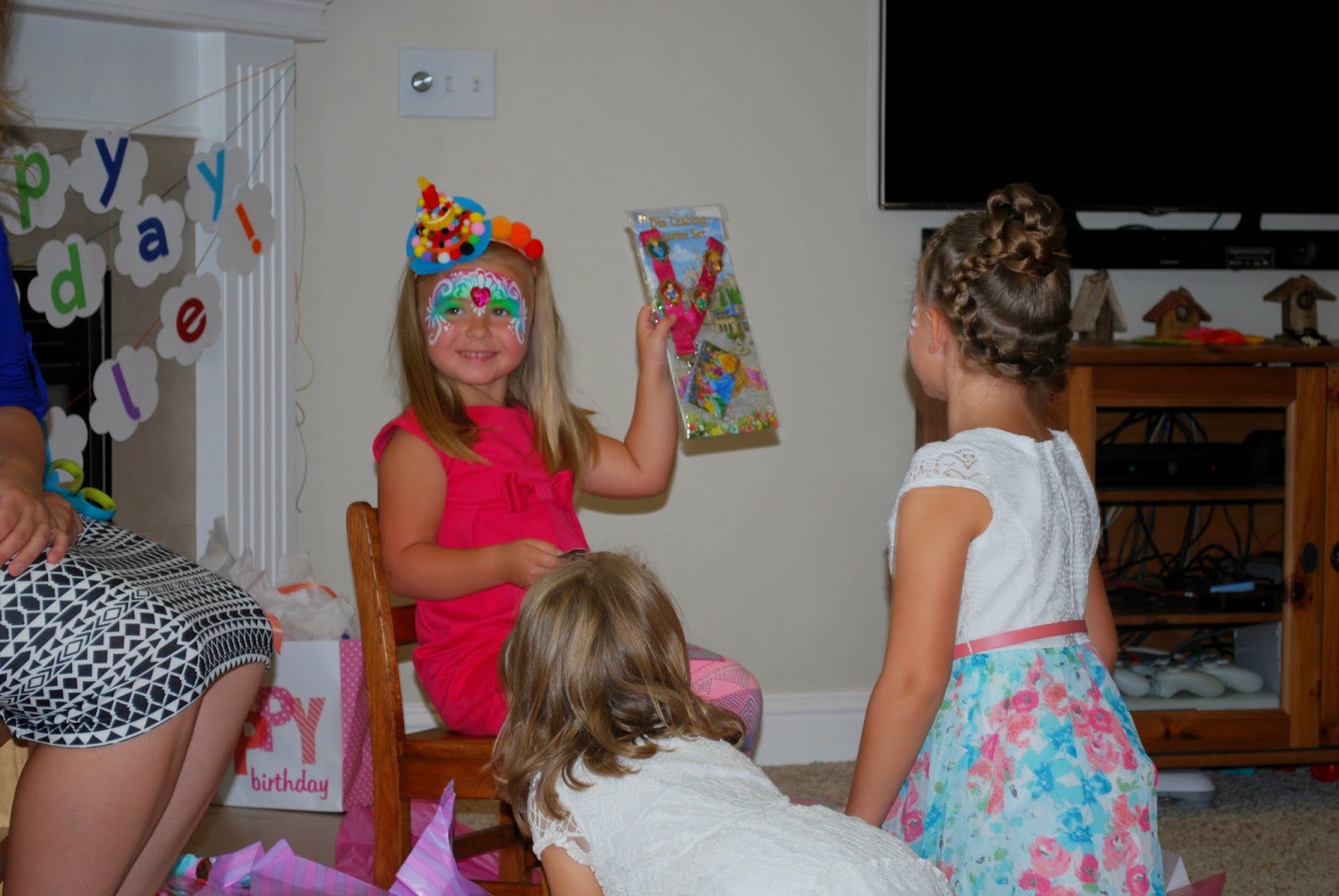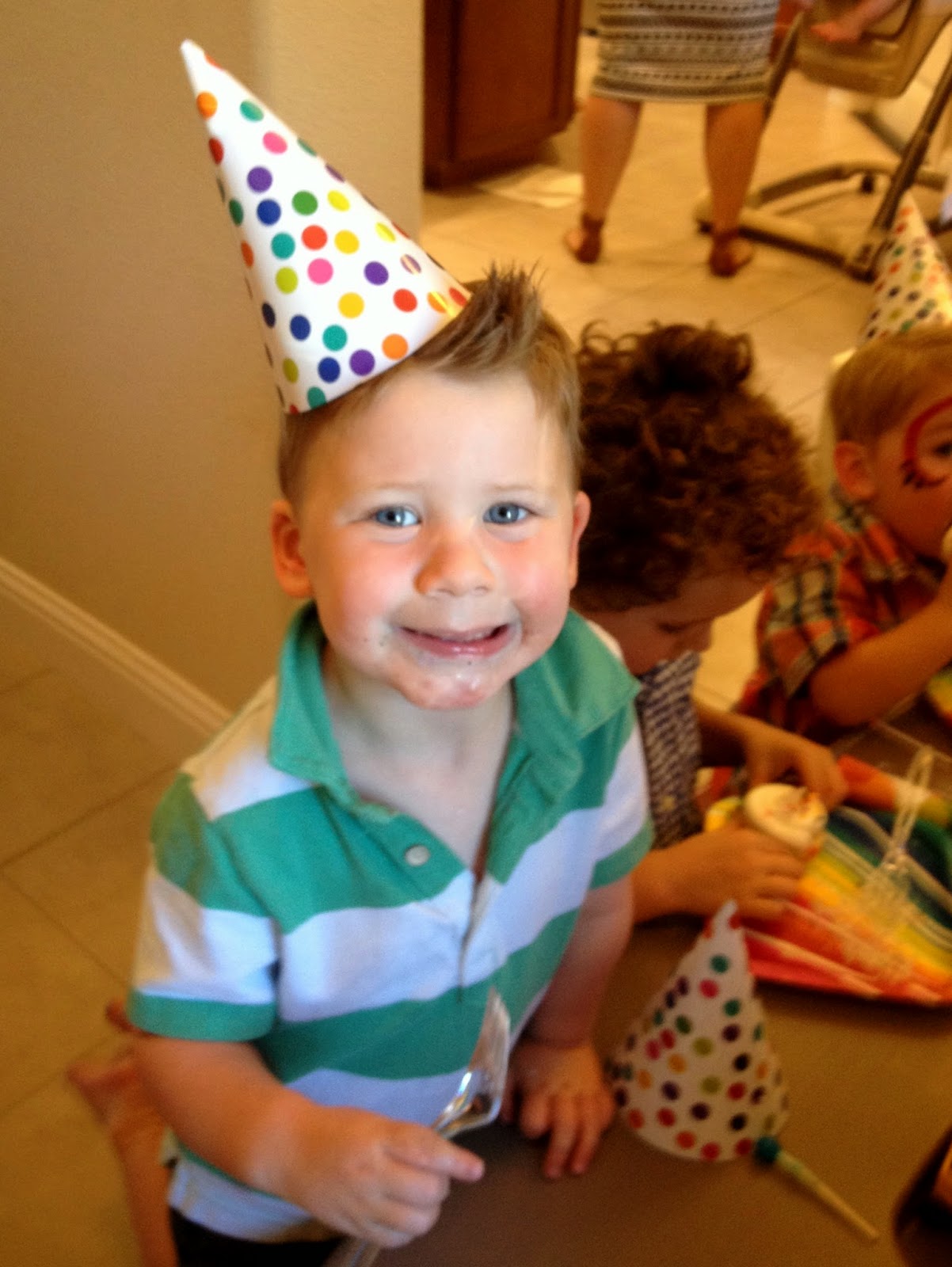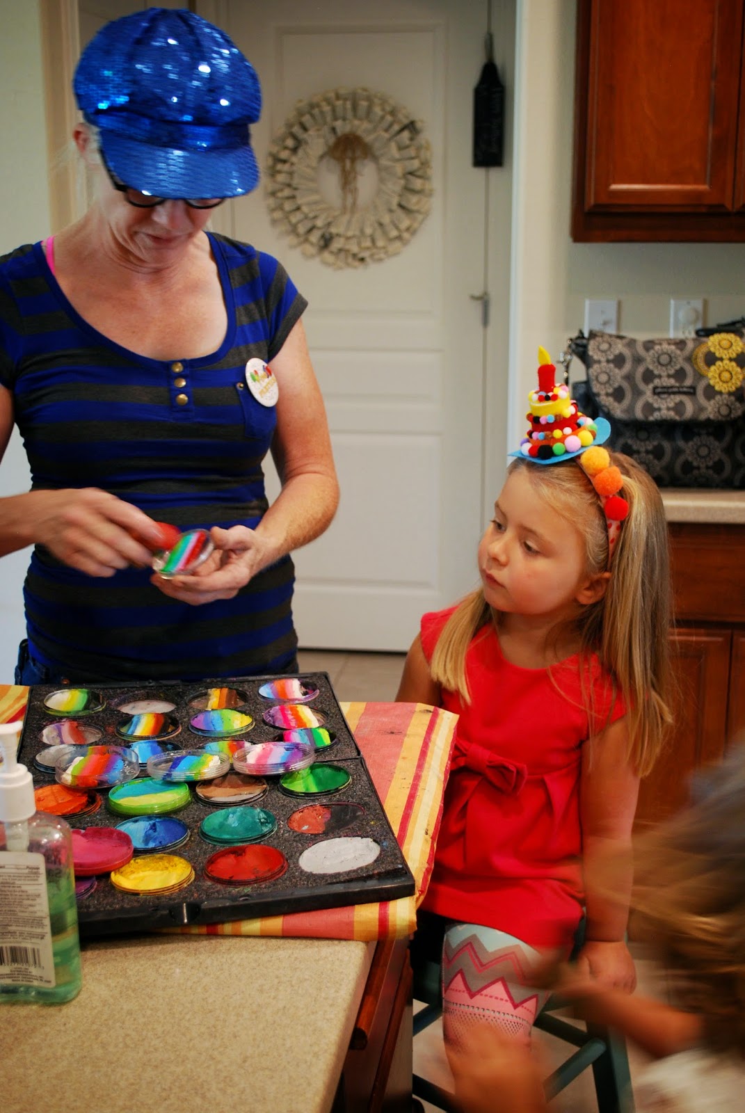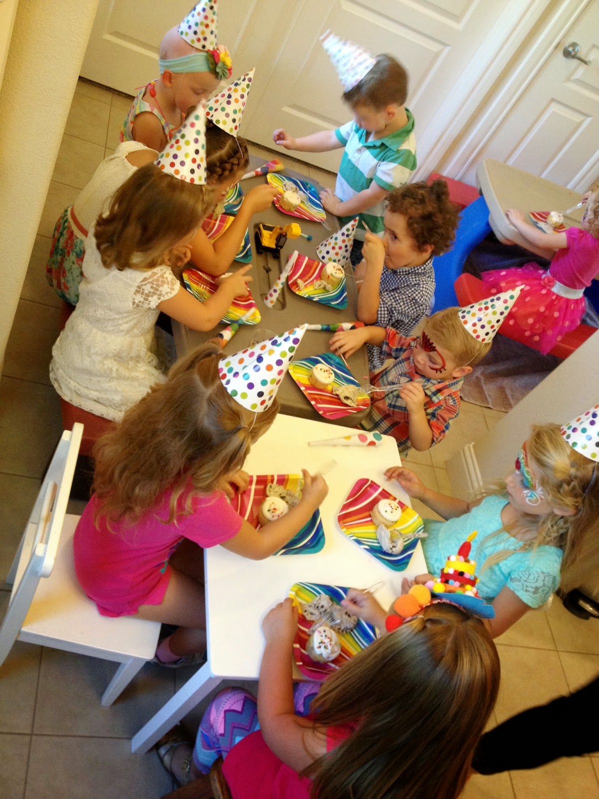 The smartest thing I’ve ever done was hire a face painter. BEST DECISION EVER. It doubled as entertainment and activity and favor and the kids loved picking out their designs and taking turns. This lady was really great with the kids and fast- we did 10 faces in an hour. (Linc passed on sitting still for five minutes to have something drawn on his face, surprise.)
