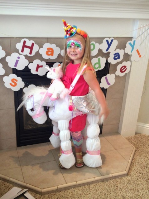 On the 4th, we celebrated Isabelle’s fifth birthday. I love Isabelle so much, and when she decided she wanted a unicorn rainbow party I just sort of smiled and went with it. You see, I don’t have very much experience in the multi-colored mythological creature party genre… I’m not even sure where her idea came from but she was SET.
