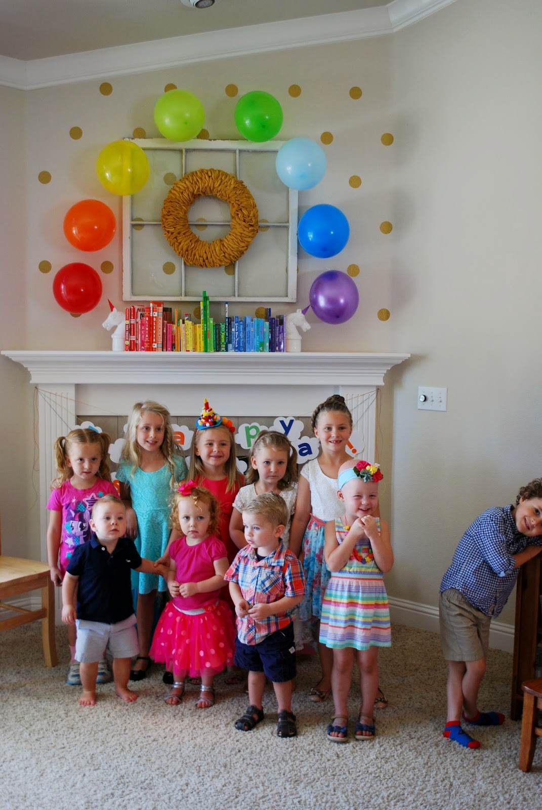 We returned from Disneyland late Thursday and the party was Saturday morning, so it was a bit of a cram to get everything ready (seriously you should have seen the front room.) but I think it may have been her favorite party ever. She helped me plan quite a bit- had her say everything from the invitations to the activities and it was really fun to do together. Sometimes while Lincoln was napping she would come in and sit by me and we would browse party supplies together and pick stuff out. She is getting so grown up.