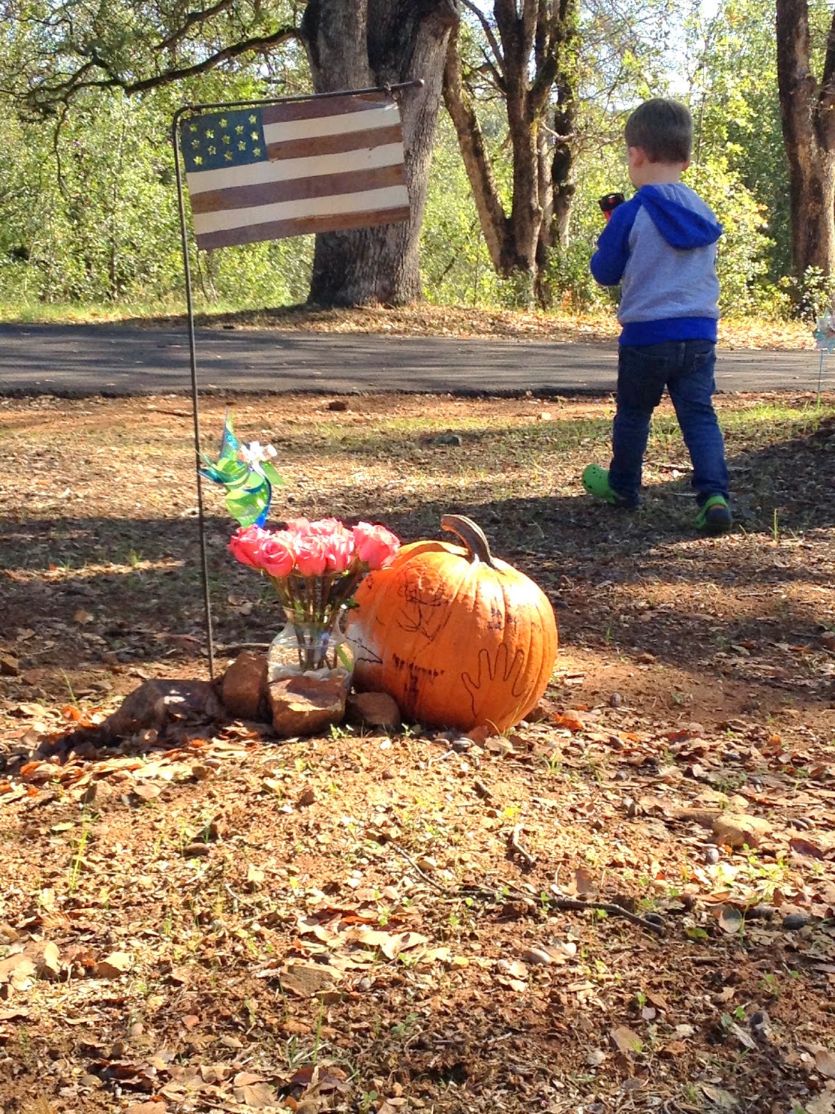 Friday was the 24th of October, exactly six months since the birth of Maxwell. Every time the 24th hits I always get a little more sad, a little more aware of our painful loss. This month was particularly extra incredibly terribly sad. I cried when I woke up. I cried in the shower.I cried in the car taking my kids around town. Ugly cry. And after lunch, Lincoln and I went to visit Maxwell’s park. We took some flowers with us, and also a pumpkin covered with messages from us to Maxwell. Isabelle wrote “I miss you.” Lincoln drew a spiderweb. Still no headstone and it breaks my heart. I sat in my folding chair at the foot of his plot and cried and cried and cried while Lincoln ran around collecting acorns and spinning pinwheels.