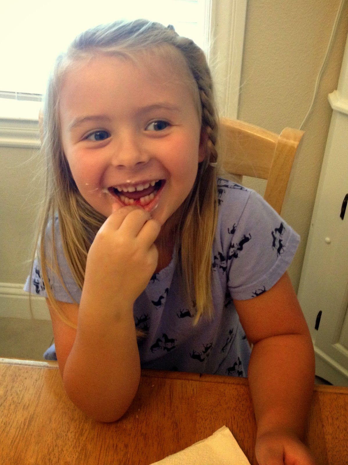 Anyway, Isabelle lost her first tooth a few weeks ago. We were so surprised that it fell out, she actually swallowed it while she was eating an afternoon snack with Madilyn. Sort of freaked me out.