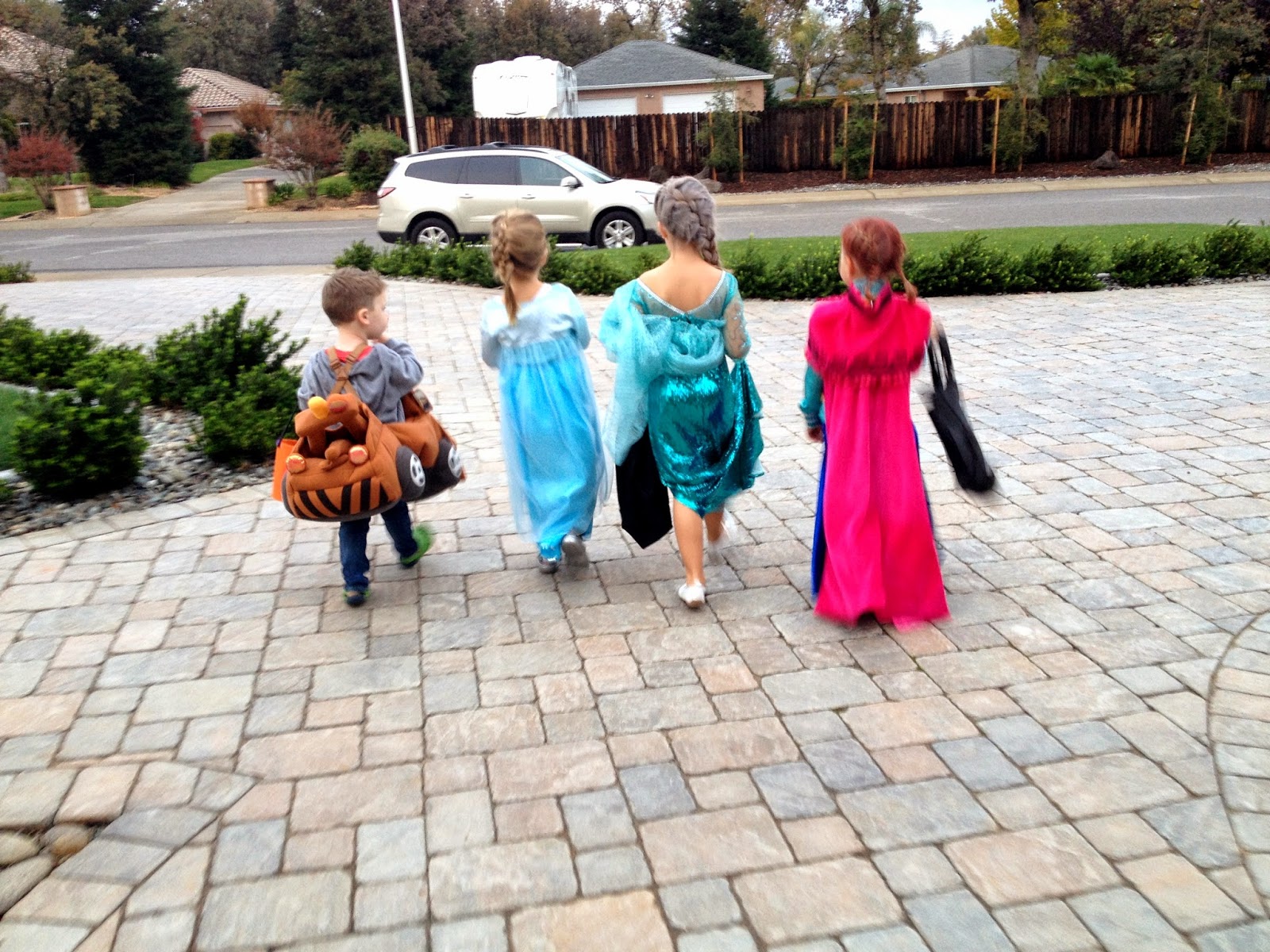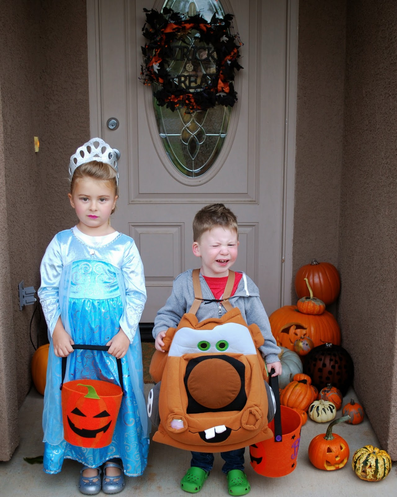 On Friday, the forecast said it was going to rain all of Halloween so it was such a relief when the clouds parted and the sky gave a temporary trick or treating break. Isabelle made a beautiful Elsa. Lincoln made… well let’s just say he had a late nap and I had to wake him up and it’s sort of like poking a sleeping giant. Once he started trick or treating he was fine, but the pictures were a NO GO. I’m glad I got a bunch of them in costume at Disneyland last month!