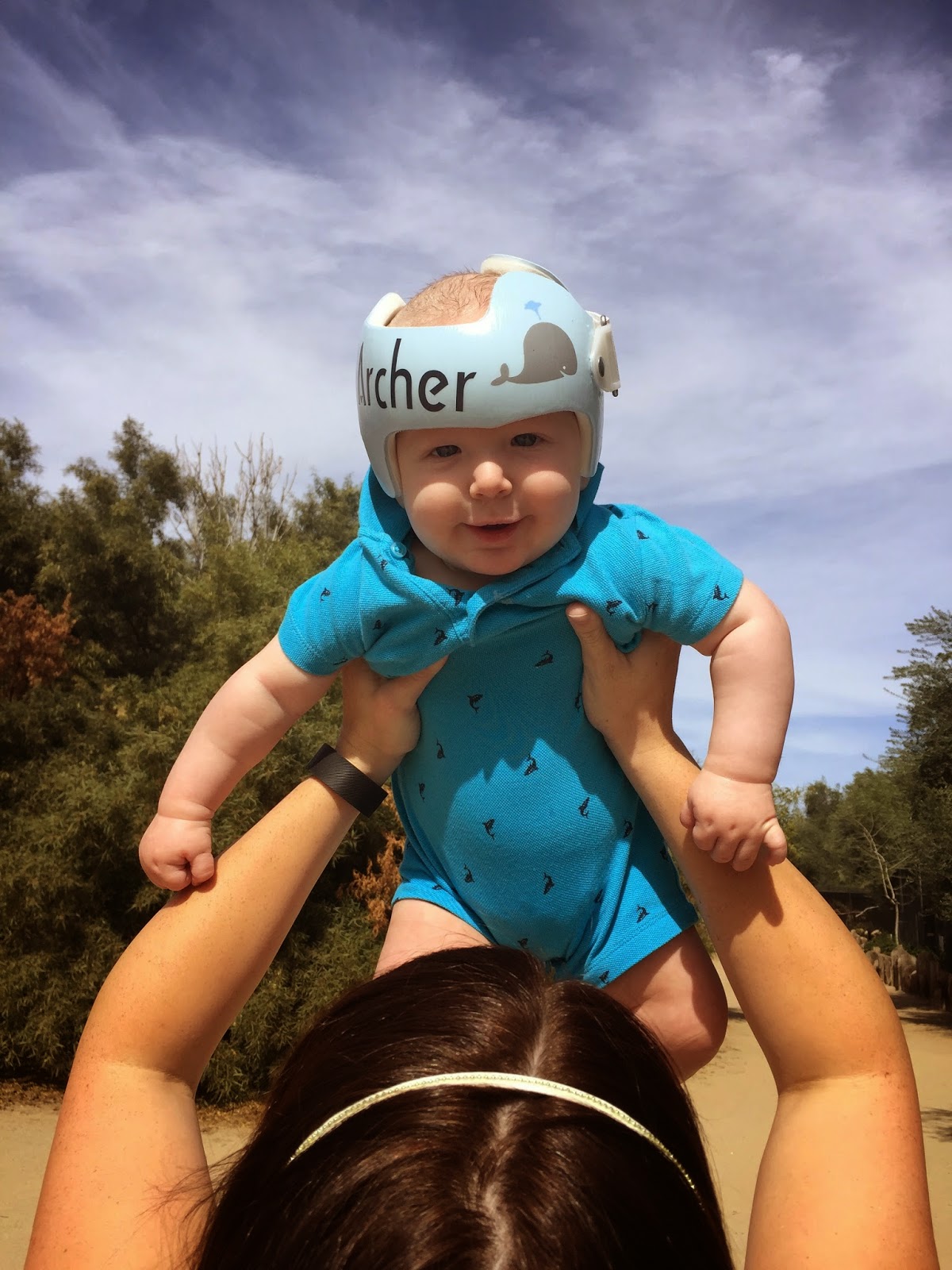 | not to be left out, Archer! 5 months and the most mellow baby in all the land. Lots of people ask about his helmet, he had a flat spot on his head so the helmet evens it out. He has to wear it a few more weeks and then done. |