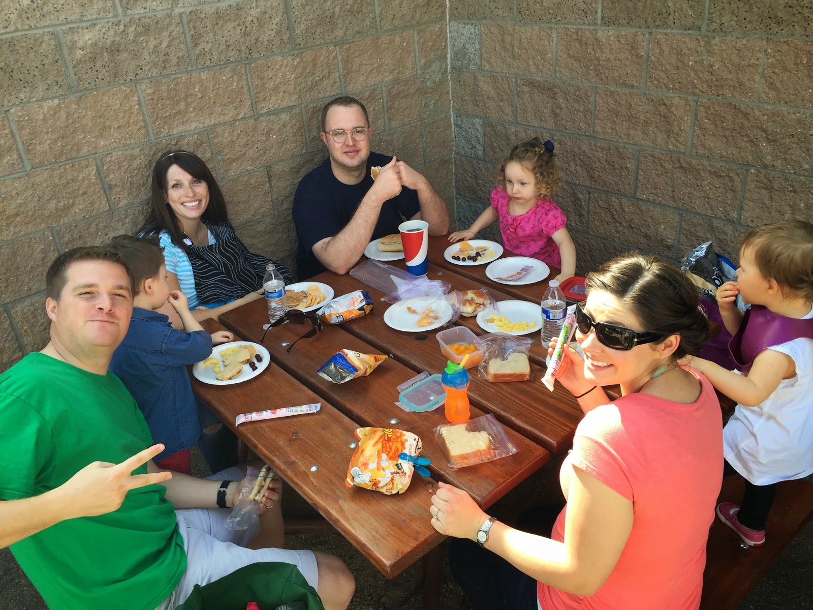 | Picnic lunch! Jared, Linc, Mo and Archer, JR, Margo, Quinn, Sabrina and her BOY baby! |