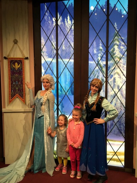 | Elsa and Anna are at Cal Adventure now, in the “movie room” |