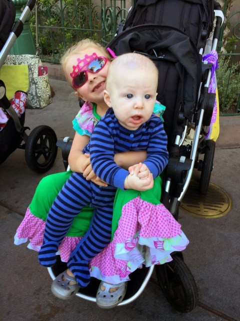 Also different this time was NO NAPS. Last October, Linc napped every day in the stroller for at least two hours. Izzie had a few naps too. This time we just kept. going. the. entire. day. About 7:45 Lincoln would drop off mid sentence, just too exhausted to continue. Isabelle was the energizer bunny, often staying up until we got back to the hotel at 10:30. By then she was silly putty mode and couldn’t stop giggling. After the kids fell asleep at the park, we took turns doing grown up rides and doing rides with Isabelle (and Margo too!) The weather was glorious, the crowds not too heavy- we didn’t wait more than 30 minutes for anything. (Mostly just Nemo.) Everything was about 15 minutes, totally do-able.