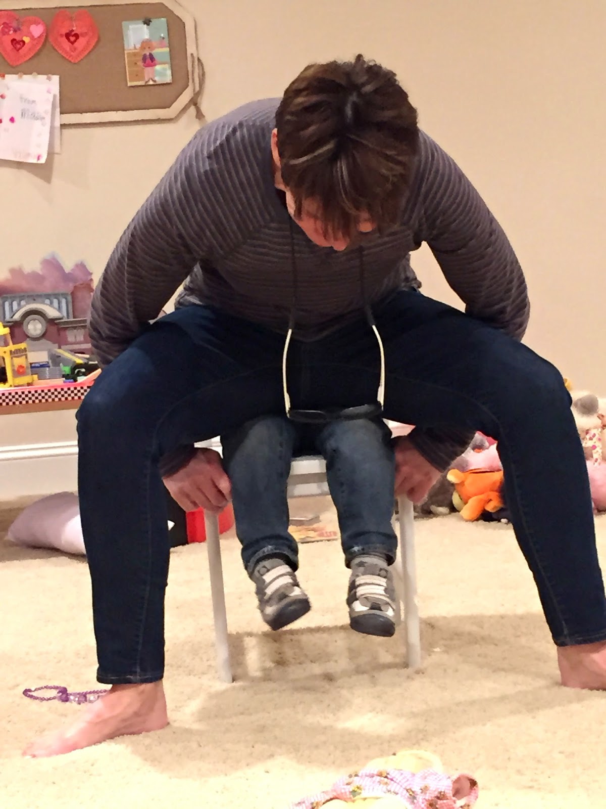 | sometimes your kid won’t sit in timeout so Grandma helps out |