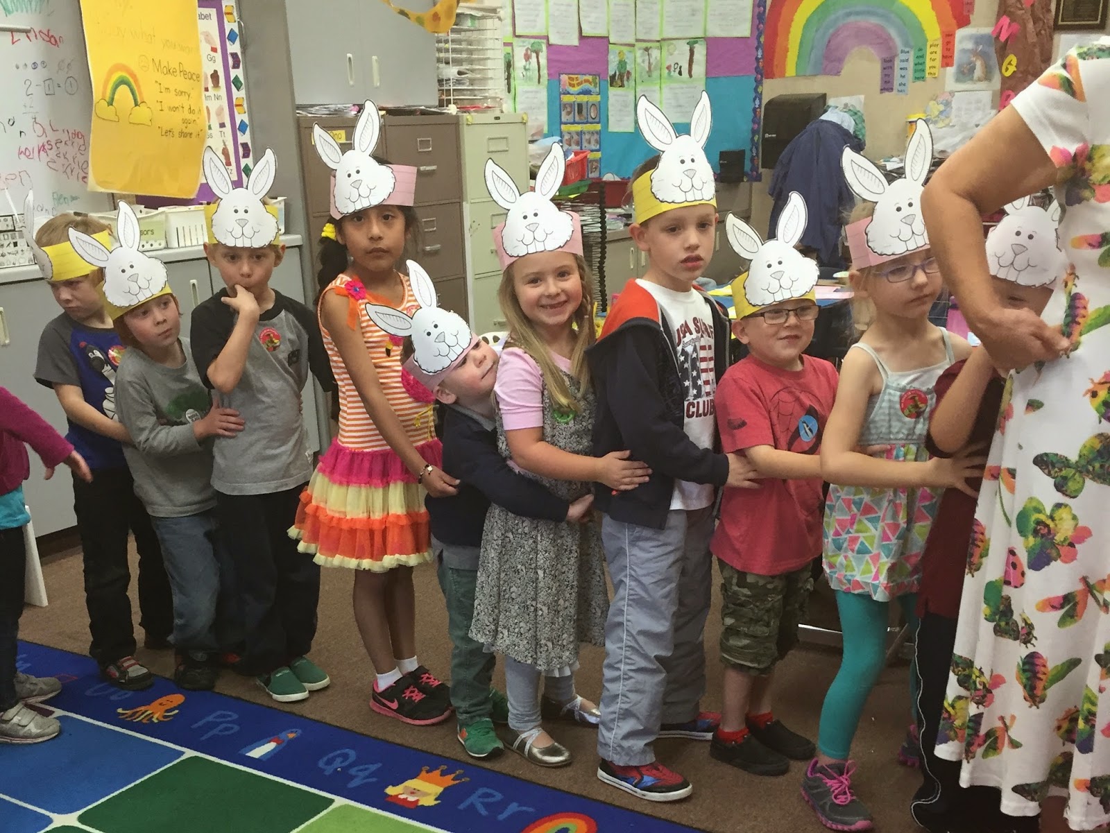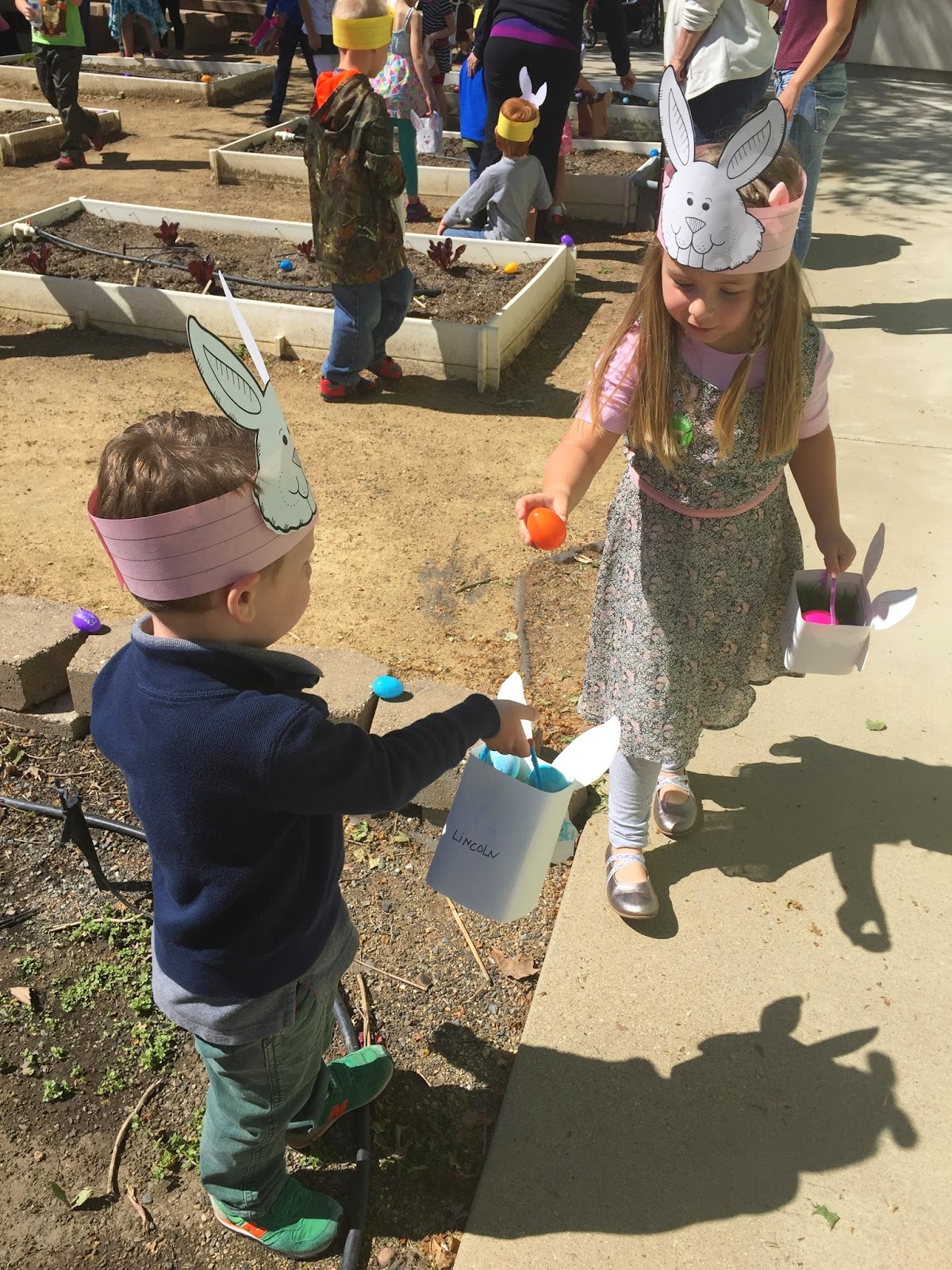 We kicked off Easter week with a little Easter party for Isabelle’s kindergarten class. Linc was allowed to tag along for a few hours and he was seriously so excited to be with the big kids. He sat on the rug, stood in line- I swear it was the best behaved he has ever been. The kids went to recess while we set up the room and there was NO WAY he was staying behind. They made the cutest little Easter baskets with real grass growing in them. Kindergarten, you are adorable.