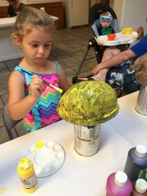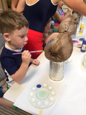 One day we painted coconuts at the clubhouse. Isabelle was detailed and thorough and Linc went for full on BLUE. Then he was done.