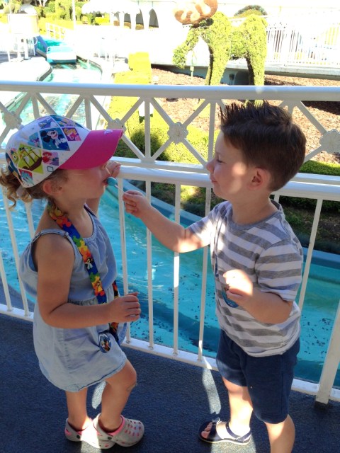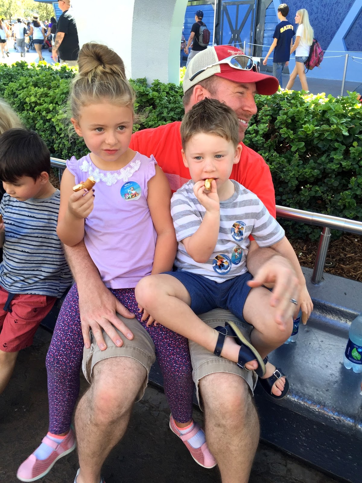We got in line with some lollipops for the kids but we were one short. Linc volunteered to share with Margo. No germs at Disney.