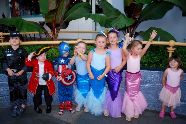 Jake from the SWAT team, Bennett as Hook, Linc as Capt America, Margs, Iz, Madilyn, Kira and Allison Trying to get their picture- hilarious. |