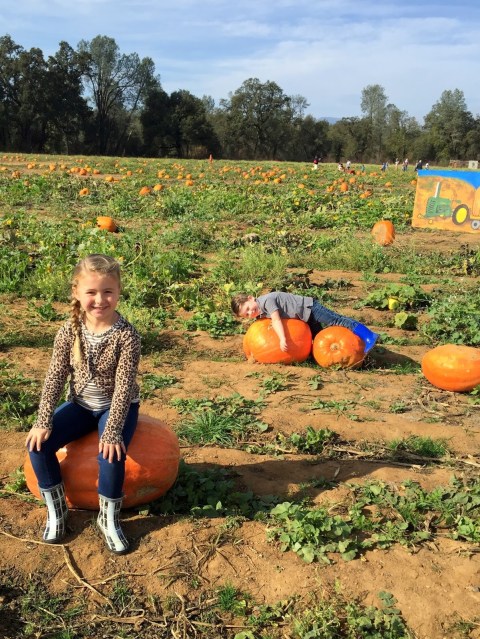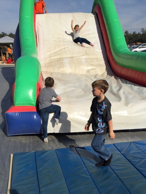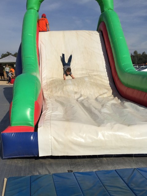 After we got our pumpkins, the kids got to why we REALLY came- the $2 rides and games. They waited so patiently for their turn on this giant bouncy slide. I’m thinking we should get one for the back yard really, so practical.