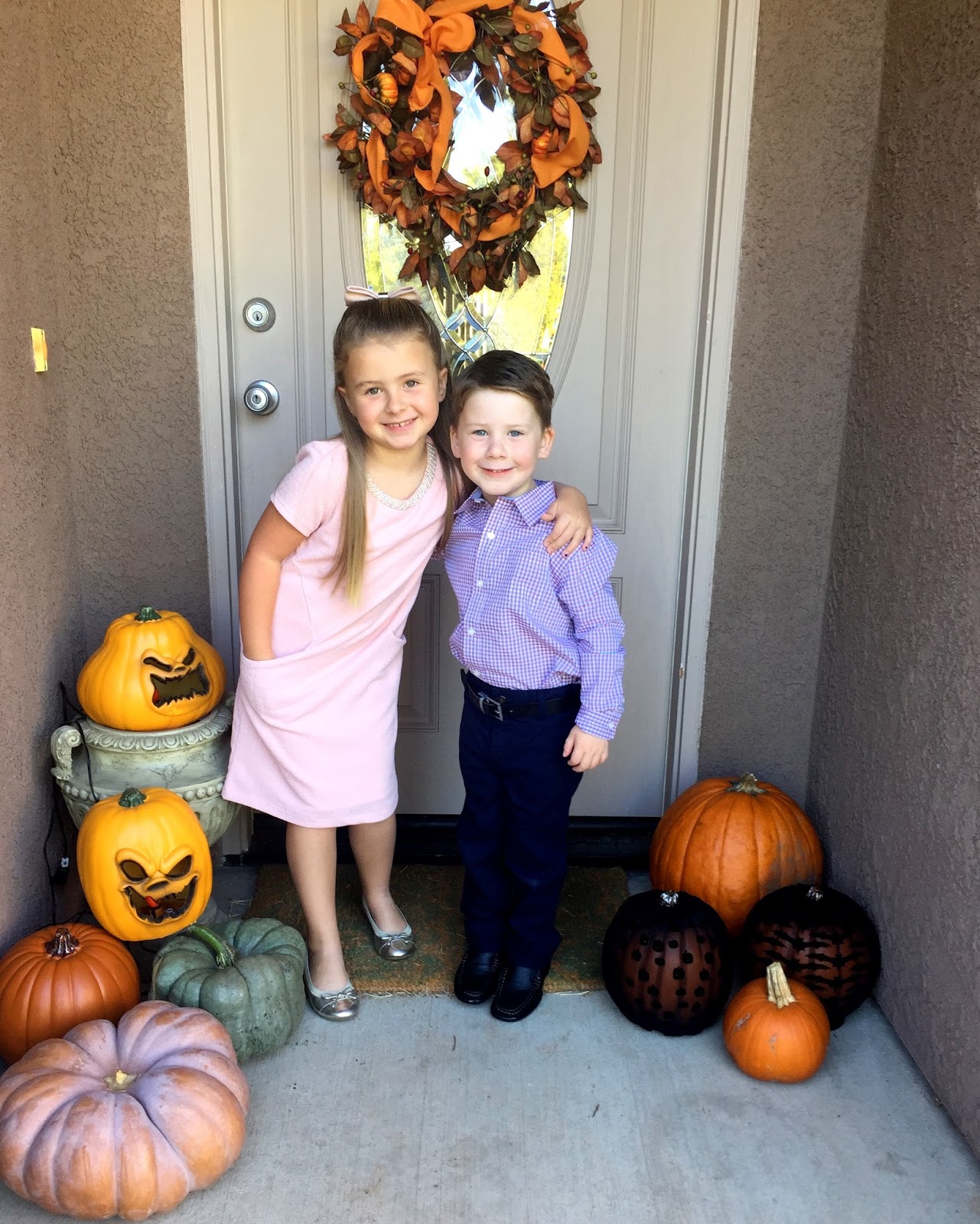The next morning we had our primary program at church. Isabelle had worked really hard to memorize her part and sing the songs. When it was her turn at the pulpit I just got so nervous for her! She’s six and still seems so small but she has all the confidence in the world and it makes me soooooo proud to be her mother. She threw me a big thumbs up after she hopped down and I almost exploded. The program went well and is definitely the most entertaining Sunday of the year. Lincoln just majorly grew out of all clothes and is now in a size five pant, size ten shoe and size xs in the boy section. How are both my kids in the BIG KID SECTION! His new church shoes are like little man loafers, I love them. These two are just the best little buddies and every day I am so thankful that they have each other. Tonight we are going to carve up those pumpkins and eat Halloween cookies for dinner in preparation for the Great Sugar Binge of tomorrow.