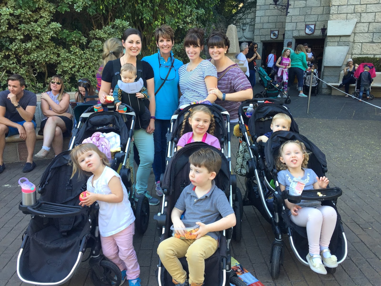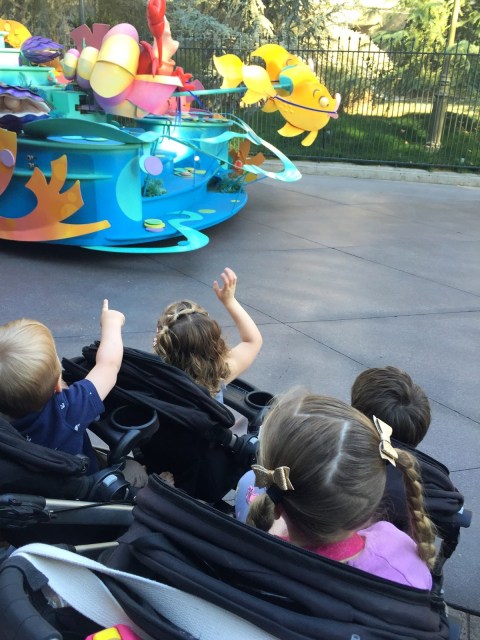 The whole group! TIP: this is a great parade spot. Right by the bathrooms near the Alice ride. It is  shaded and not terribly crowded and then also- the bano is right there. Stroller brigade! Quinn is 2 1/2, Grayson is 6 months, Linc is 4, Iz is 6, Archer is 16 months, and Margs is almost 4,Â