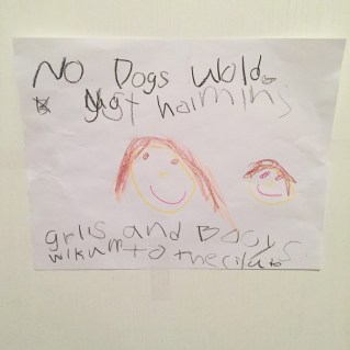 Izzie made this for her door- “No dogs allowed, only humans. Girls and boys welcome to the club”