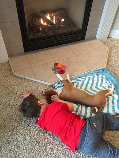 He LOVES the fireplace. It’s like he is sedated and drunk. Just flops around.