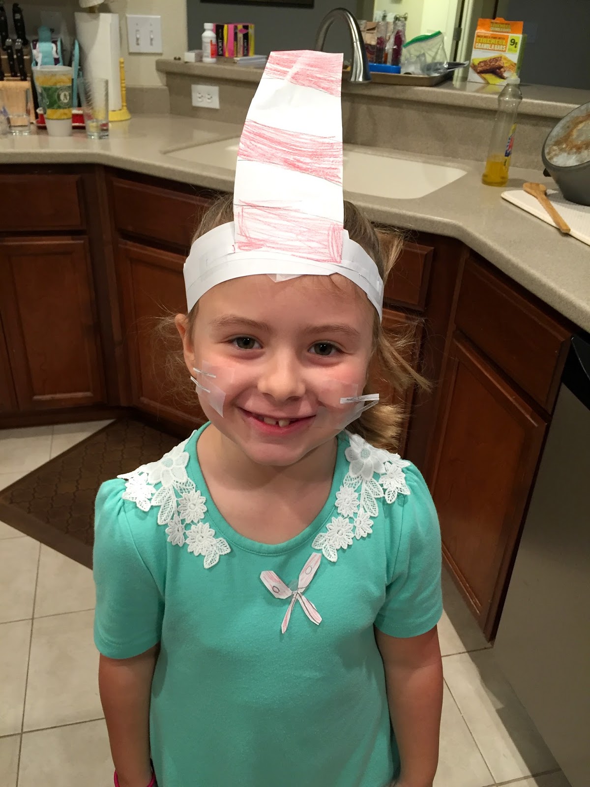 And Izzie, always my sweetiepie. She knew Dr. Suess day was coming up so she made a hat, whiskers, and a bow during “quiet time.”