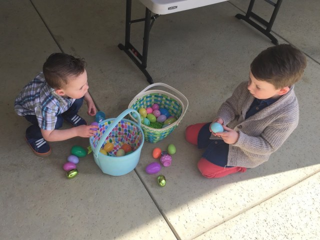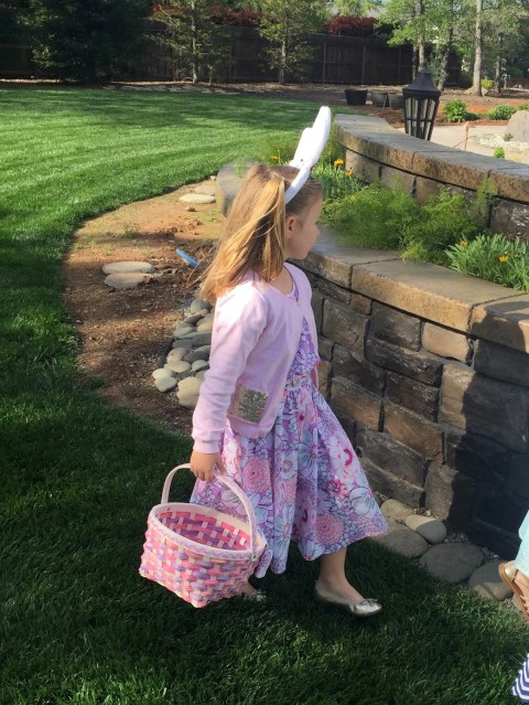 I love Easter weekend. It’s always a good time, having kids makes holidays just really super fun. Saturday we had a big egg hunt at my parents’ house with some of our cousins and little buddies. They hide a couple hundred eggs and then golden eggs for the grown ups. I half watch the kids find treats but also like MUST FIND THE EGG. Sorensen team, three years running.