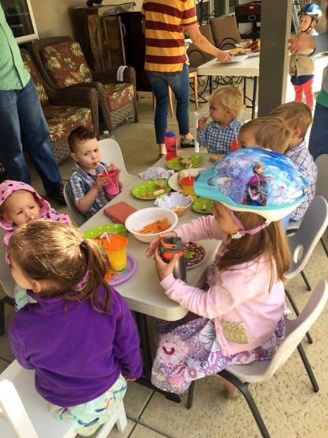 Mom made a bunch of PB and H sandwiches for the kids and had meat and cheese and yummy rolls for the grown ups. I’ve learned so much from her about life in general but also about hostessing a group of people. She always has things on hand and bring out “just in case.” She opens her home to us and our friends and never complains about the mess or the hassle of it all. She really does enjoy it and she has this special thing with little children- they just gravitate to her. And she scooters with them.