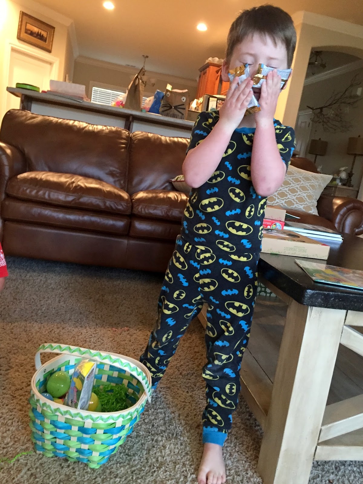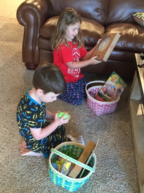 Sunday morning was a bit of a rush to accomplish Easter Baskets and also get to church by 9 am. Every year I overbuy chocolate and jellybeans and stuff and then SWEAR that next year I will buy less stuff. I guess it’s better to be prepared? Dollar section at Target, you are excellent.
