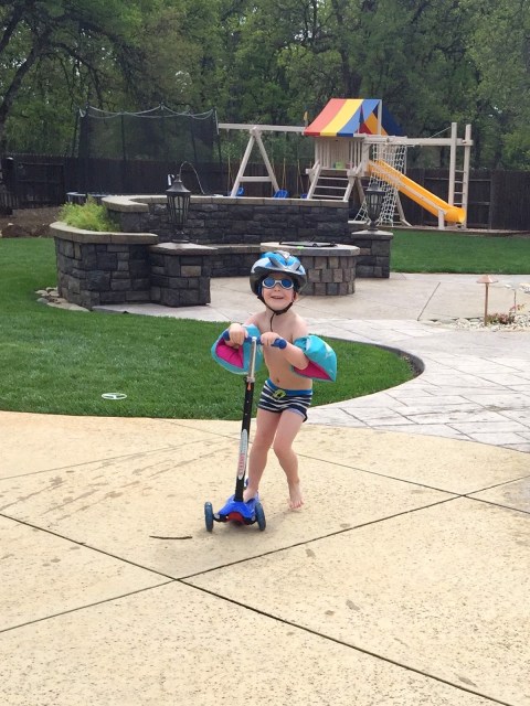 | this kid. british swim trunks, goggles, soggy water wings, helmet. WINNING. |