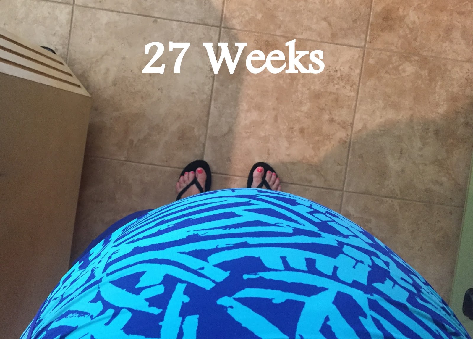 Well I am losing sight of my feet these days. I just hit the whoa I can’t bend over phase, stuff on the floor becomes lost forever. This was last week at 27 weeks, and now I am officially in the third trimester! Yes! Let’s do this!