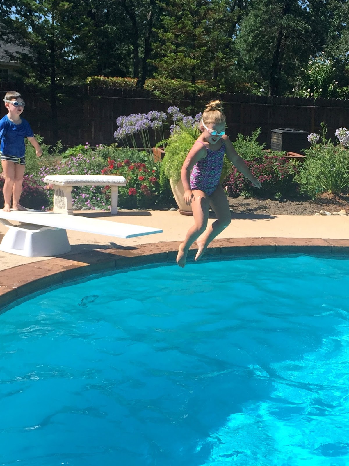 Izzie’s junior swim team lessons are at 9 am M-Thursday for six weeks. The last two weeks, Lincoln has had swim lessons right after that. So basically we are in the water A LOT. Hours and hours everyday. It’s been so hot the last few weeks that you can’t be outside without being in the pool. It’s just too melty. We are so lucky Grandma’s pool is right around the corner! Isabelle is learning how to dive standing up. Lincoln has suddenly flipped a switch and become a FISH. He just owns that pool and does a pretty good job keeping up with the “bigger” kids. Goggles, his tiny swim shorts, and he is good to go. Izzie always has a fuzzy swim bun and a wedgie from her suit. My favorite little people.