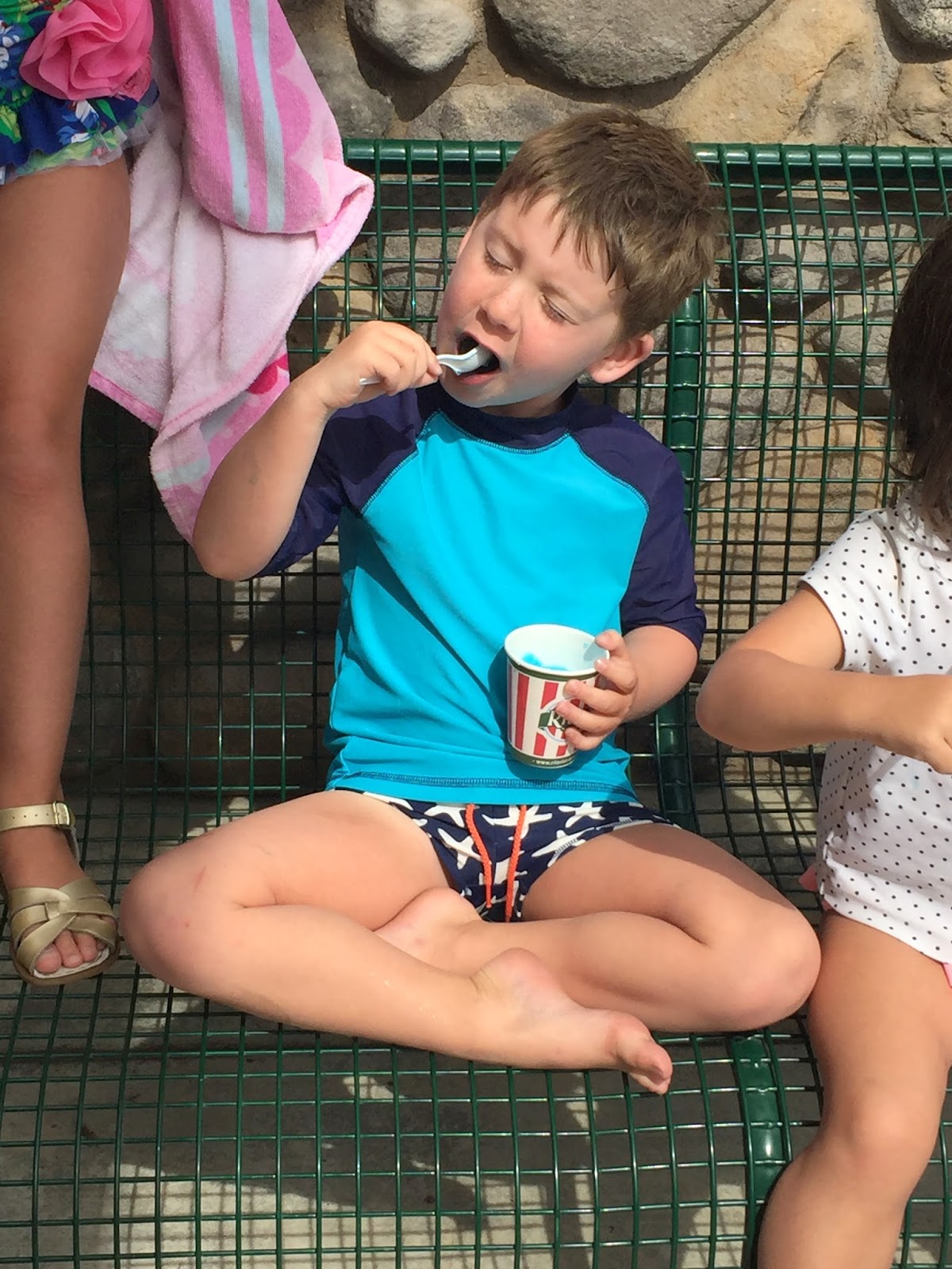 We spent the whole day together on the 4th- major swimming, icees, and my dad smoked like six racks of ribs. Like six! Oh man they were so good though. Some kids stayed up for the fireworks, others did not.