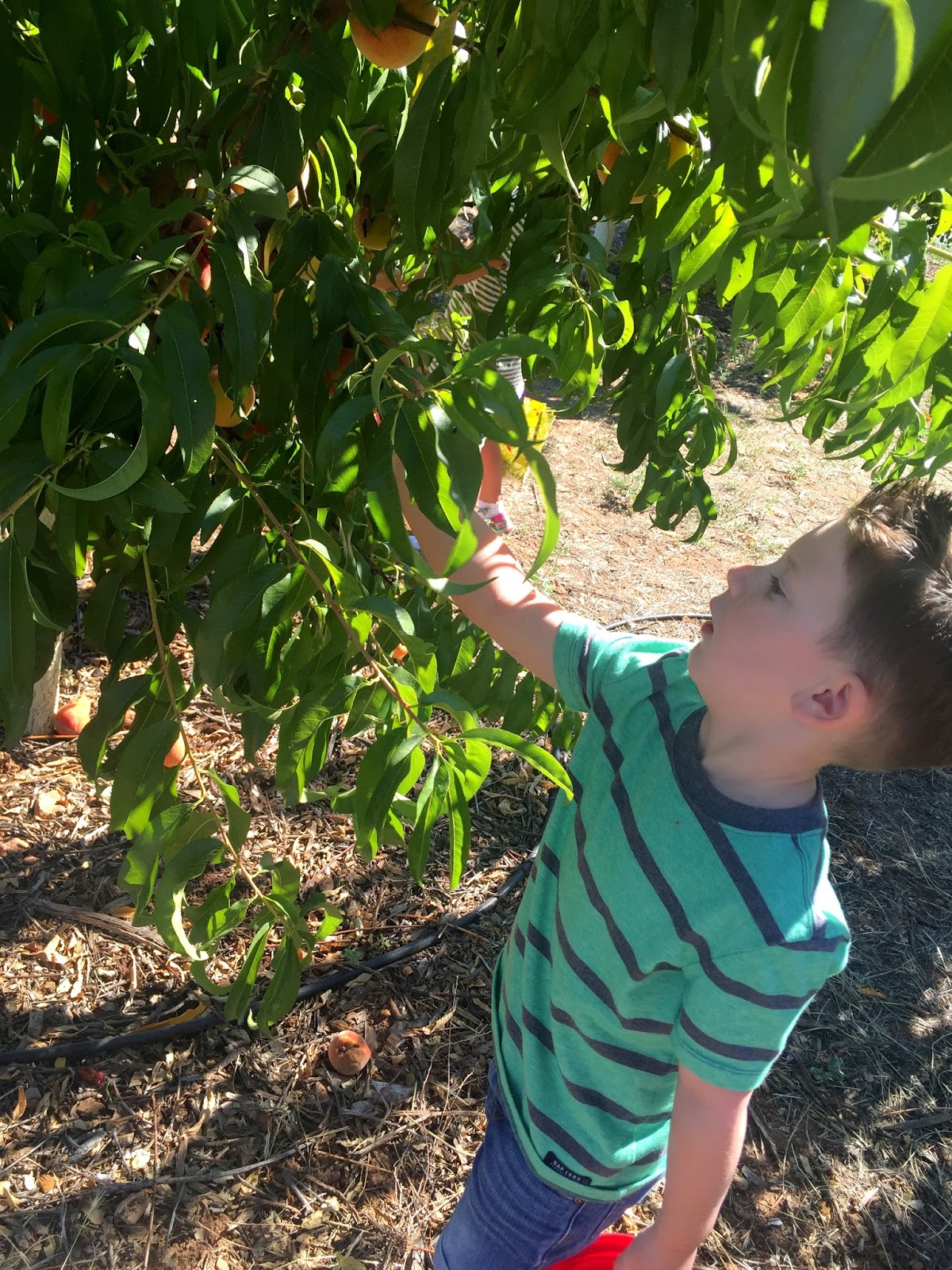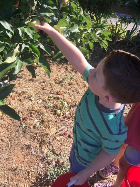 So we spent some time out at Serendipity Farms in Anderson, picking not quite ripe peaches and looking at the farm animals. Guys, it was hot… and I’m preeeeeeetty pregnant these days… but we went and we had a really good time. We saw these huuuuuuge fruit spiders in the center of really impressive webs.. Linc immediately asked, “where’s templeton!?” (We just finished Charlotte’s Web this week and it was fresh on his mind.) We saw all different kids of fruit and nut trees, the kids even got to pick some and sample them right off the branches. We talked about how the trees grow and whe the fruit is ready to be picked- what makes good fruit and what makes not so good fruit.