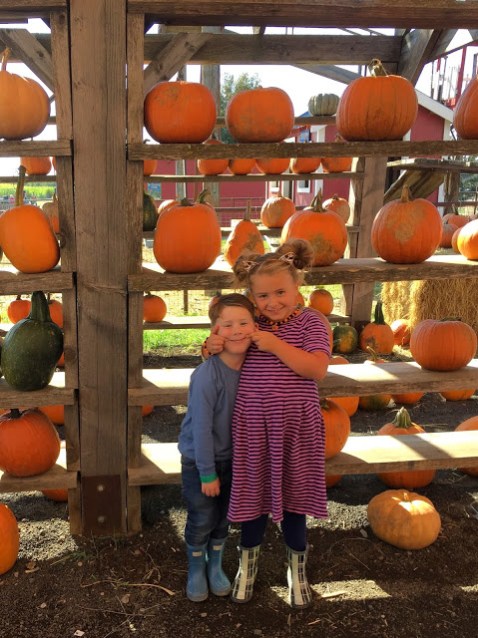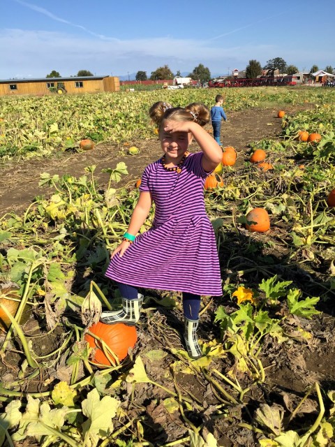 We hit the pumpkin patch with the whole fam first thing on a Saturday morning. The nice thing about having kids is they get up early, and you can beat the crowds. This was one of our first outings with Thatcher and I wasn’t sure how it would go, but he did great. You sort of have to lower your expectations a little bit… there was no time for a perfect little pumpkin photo shoot. It was hot, kids got hungry, Thatcher got hungry. Picked some pumpkins, rode the train, did a couple activities and done. I laugh at myself because a few years ago I would have lugged my big camera all around that farm trying to get good pictures of all three kids together. Now I’m just glad I don’t lose them.