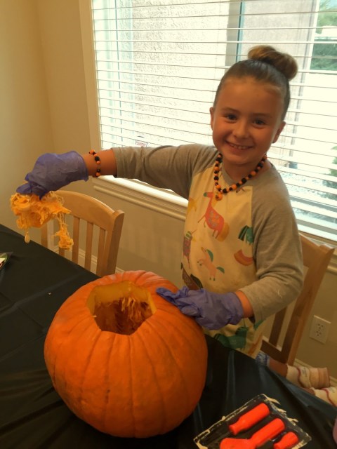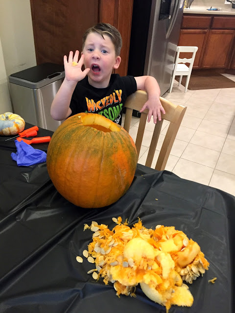 AND THEN EVEN MORE HALLOWEEN. We carved pumpkins, because it isn’t halloween without gourd guts crusted to my kitchen floor. Not that the kids touch the guts because POISON but it’s still fun. I observed from the other room with Thatcher constantly eating.
