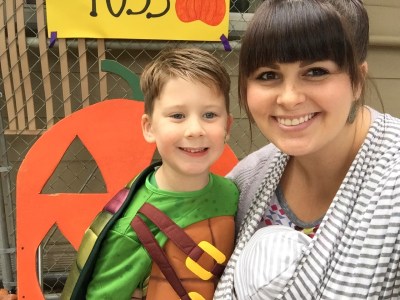 Lincoln had a little harvest festival at his preschool. They set up all these activities and you win prizes and then we had a little parade with all the kids in their costumes. Lincoln wanted to be a ninja turtle, not just any but the blue one obviously. There is no way to make a ninja turtle not cheesy so we just embraced it and shelled out cash at target for this beauty. The mask makes me laugh because Linc didn’t have to smile at all he just wore that thing everywhere.