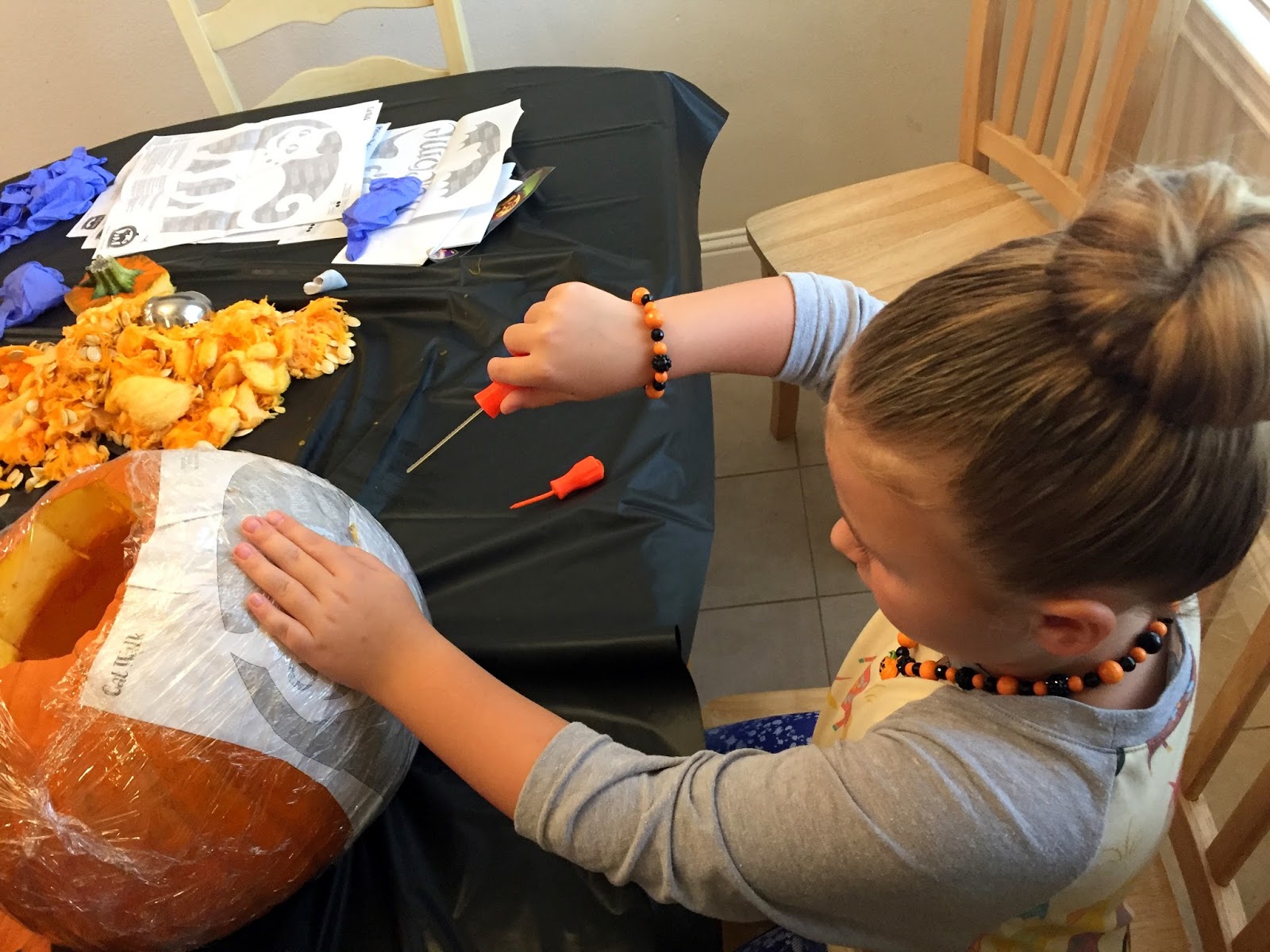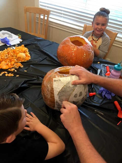AND THEN EVEN MORE HALLOWEEN. We carved pumpkins, because it isn’t halloween without gourd guts crusted to my kitchen floor. Not that the kids touch the guts because POISON but it’s still fun. I observed from the other room with Thatcher constantly eating.