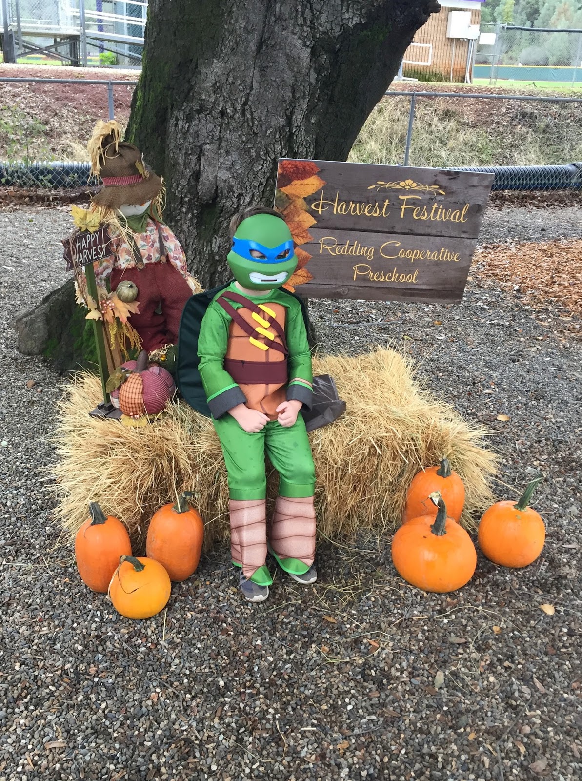 Lincoln had a little harvest festival at his preschool. They set up all these activities and you win prizes and then we had a little parade with all the kids in their costumes. Lincoln wanted to be a ninja turtle, not just any but the blue one obviously. There is no way to make a ninja turtle not cheesy so we just embraced it and shelled out cash at target for this beauty. The mask makes me laugh because Linc didn’t have to smile at all he just wore that thing everywhere.