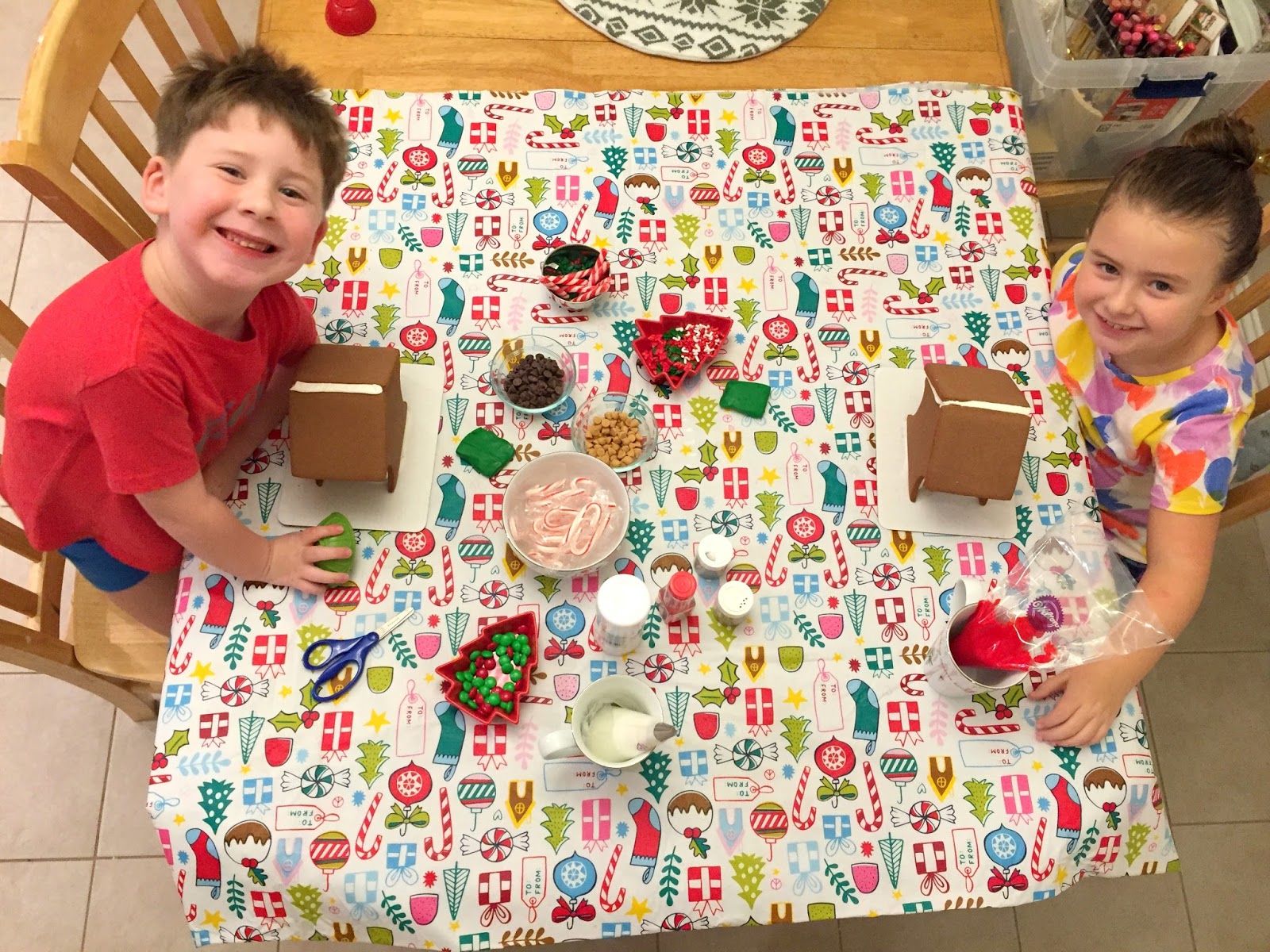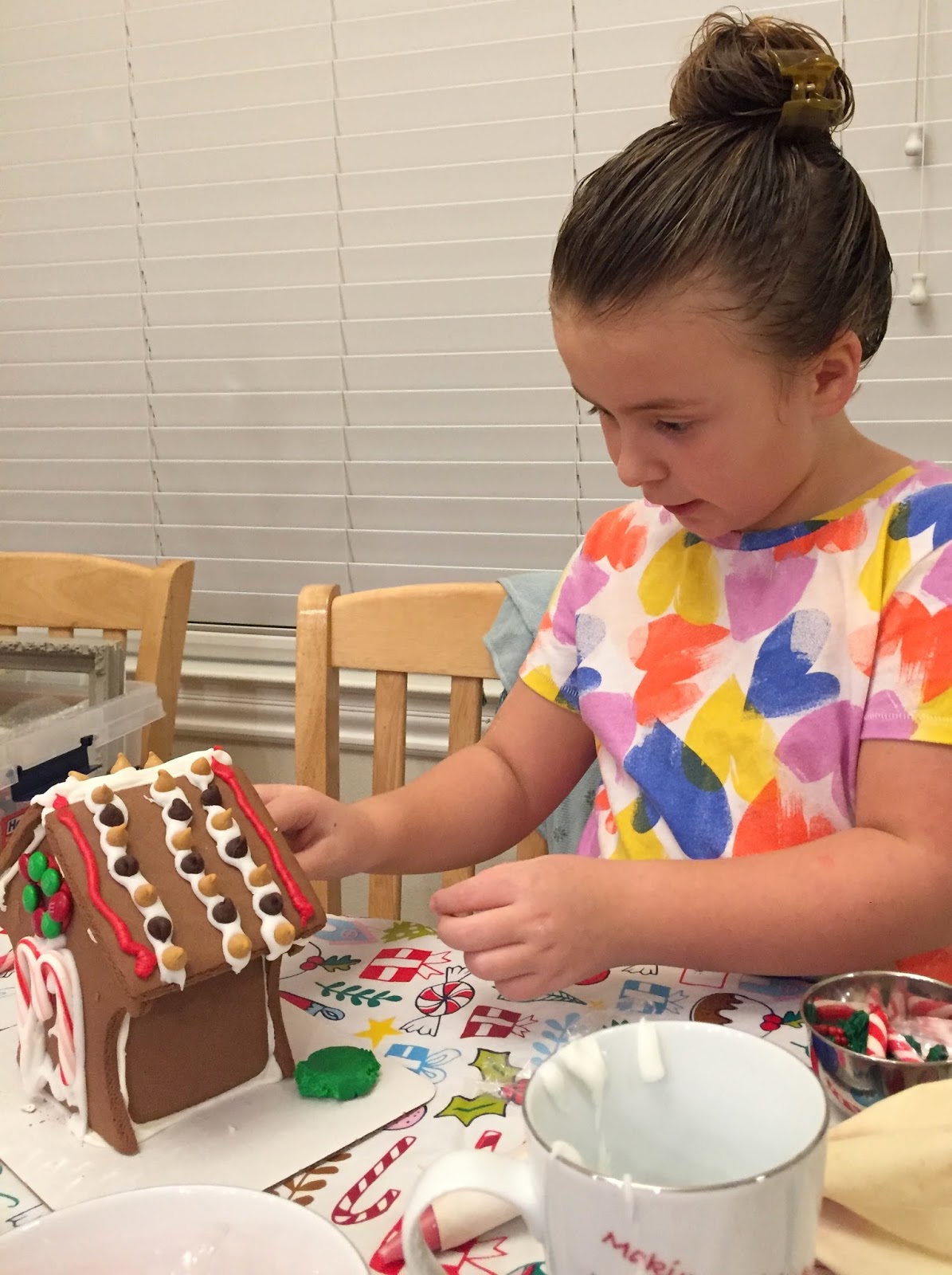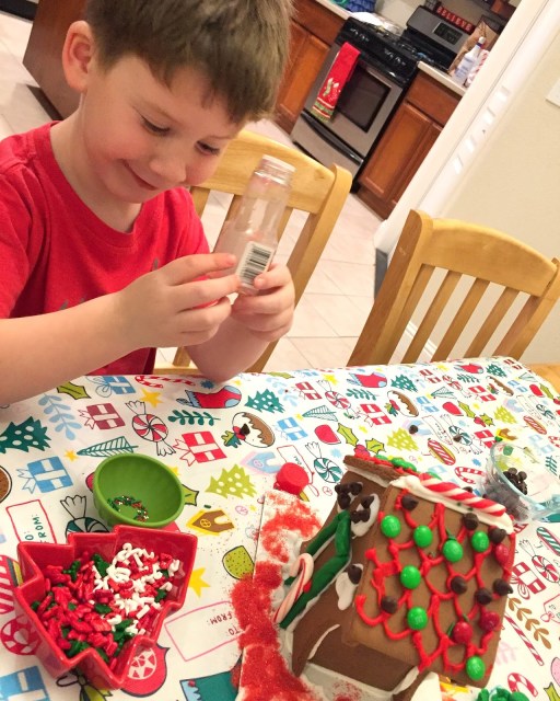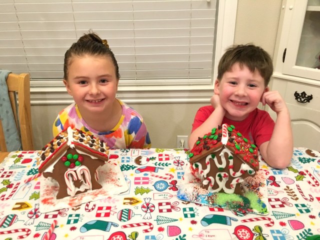 We made gingerbread houses. Linc made a shark pool out back. Isabelle was meticulous and careful.