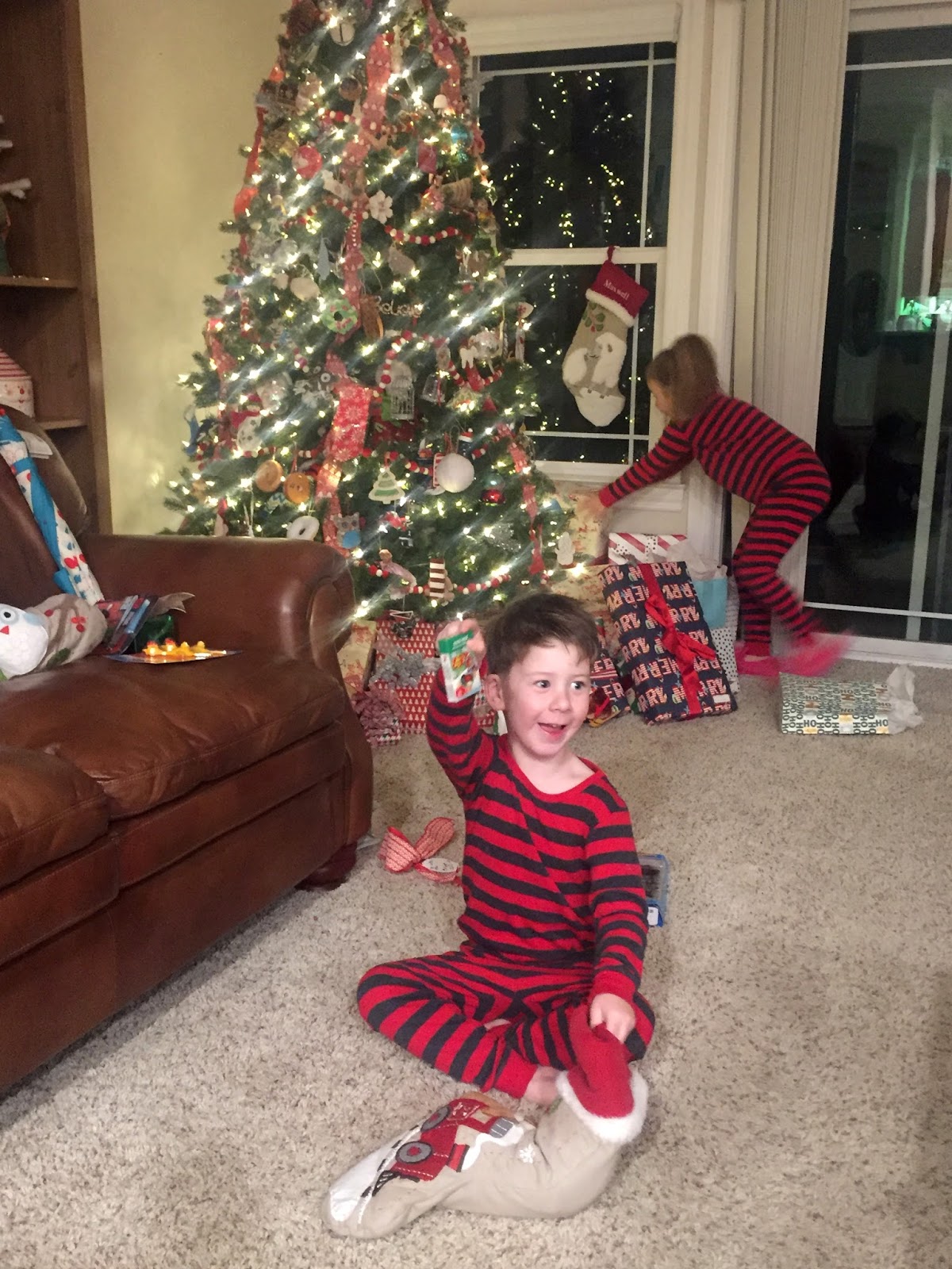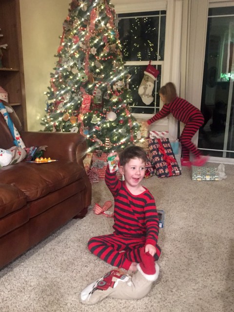 We went home and put the kids to sleep after doing the cookie/carrot/milk situation. They also like to sprinkle sparkly oats on the lawn so the reindeer know where to stop. It’s so important to me to help them have magical holidays, and even though I was tired and it was late we took the time to make those sparkly oats. After answering tons of questions about the santa and our chimney and what time was appropriate for them to wake up, the kids went to sleep.