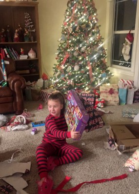 | my favorite part is when everything is over and the kids play nicely with their new things and there is wrapping paper everywhere and then maybe you eat an extra cinnamon roll. |