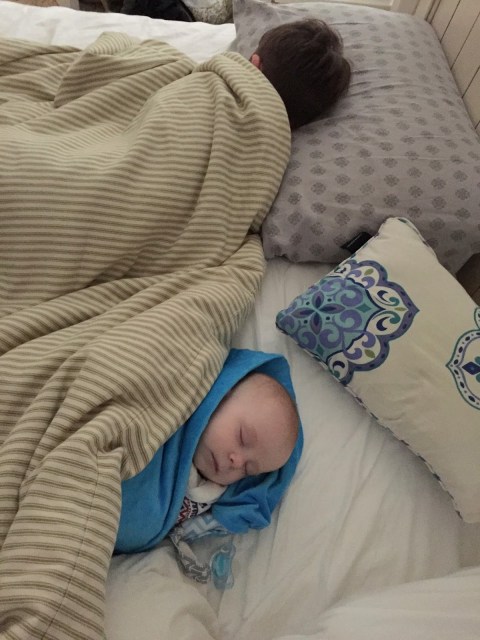 Last week, Thatcher woke up early from his nap so I grabbed him and laid him in my bed for a minute and he went right back to sleep. Linc came in, crawled under the covers and fell asleep in about ten seconds flat. Probably a once in a lifetime situation so I had to document.
