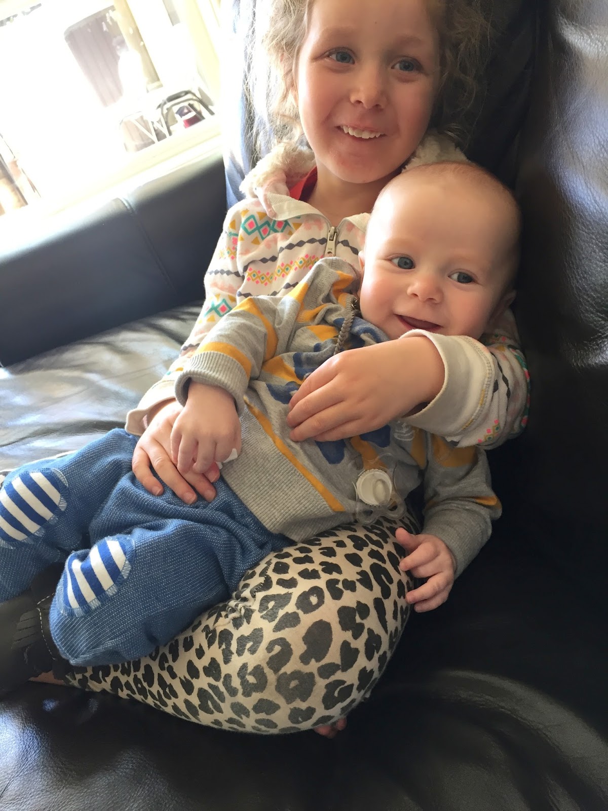 Thatcher loves his exersaucer thingy, he loves to lay on the floor with his toys but NOT be on his tummy. Will immediately flip. definitely not going to set records for crawling, he has no interest. His most very favorite thing in the whole world is watching Iz and Linc. Izzie LOVES Thatcher- she always wants to go get him after his nap, hold him, get him out of the car seat, etc. Linc on the other hand… once in awhile he will jump around and Thatcher just explodes in giggles, totally out of the blue. Sometimes Linc will do it again, more often he is like nah I got stuff to do. There are a few sweet moments where he says “I’ll keep an eye on the baby” or “Mom Thatcher needs his Paci” but mostly it’s “Can Thatcher go to sleep now.” lol. Thatcher’s favorite toys are an empty water bottle, Jazz’s beard, and this tiny pirate rattle we have.
