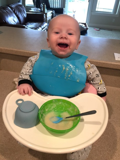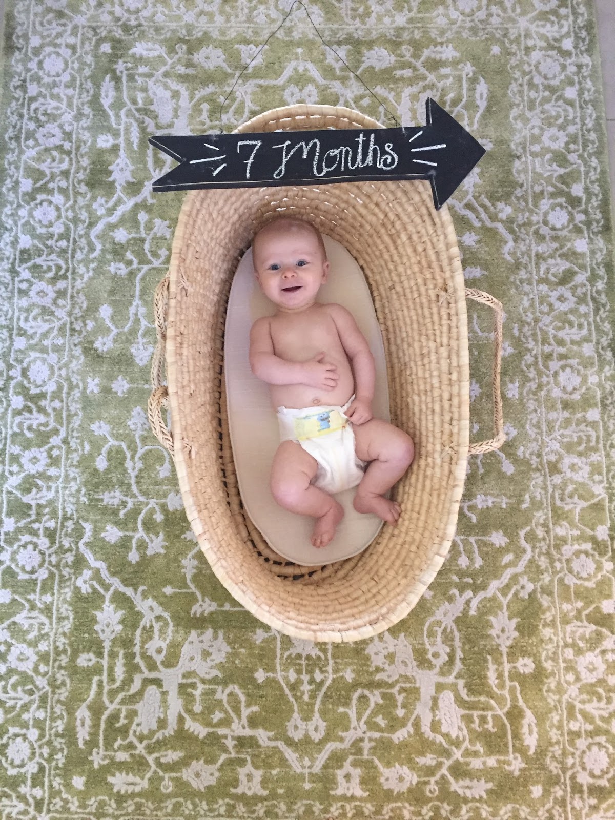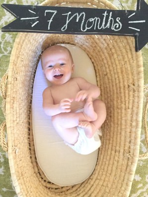 Thatcher at 7 months! Such a happy baby, smiles at anything and everything. Thatcher got his first bites of food this month and hasn’t looked back. FIVE TEETH. Favorites are sweet potatoes, pears, ritz crackers, and chunks of bananas. Least favorite would be avocado and peas, those were a no-go. He has five teeth but I’m still surprised that he wants to feed himself snack foods! I handed him a pizza crust last week just to keep him busy and he was DELIGHTED. More food mom, give me more food. Carbs, please.