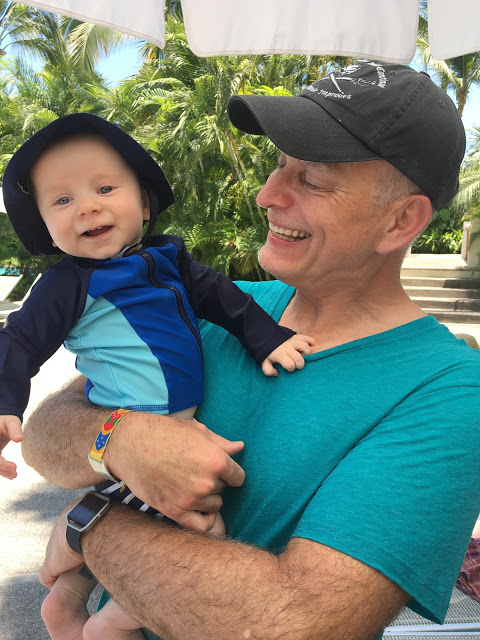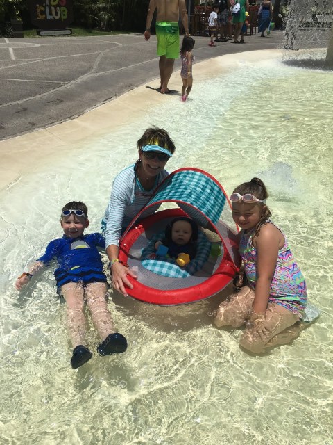 The resort we stayed at was bananas. We had a gorgeous ocean front view right off our room and this tiny little pool on our balcony which the kids thought was pretty sweet. Endless pools, splash pad, wave pools, big slide, lazy rive, sandy beach– on and on and on. So fun for the kids and fun for the grown ups too. The kids were EXHAUSTED every night and they slept hard! If you are going on vacation without your spouse, I highly recommend going with a BUNCH of family members. Everyone was so helpful with my big kids so I could run up to the room and feed Thatcher and give him a good nap.