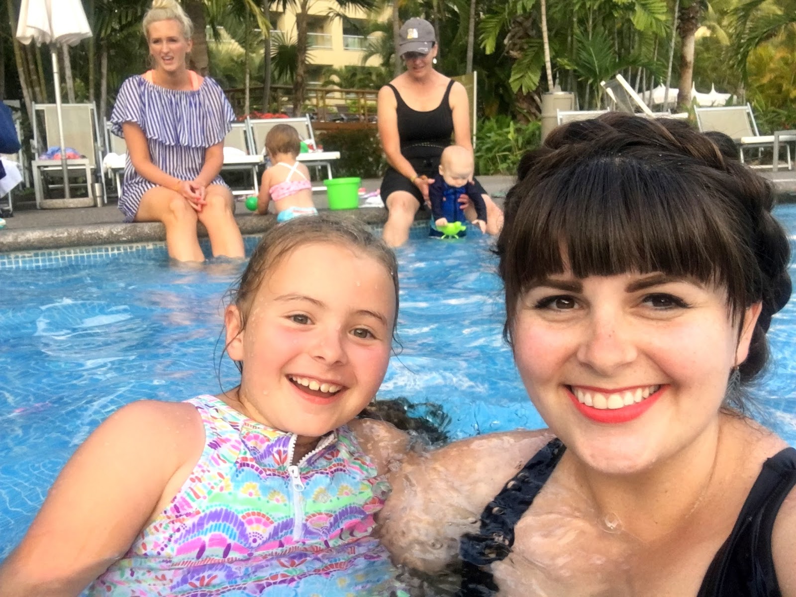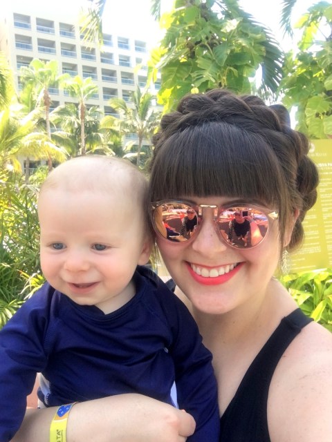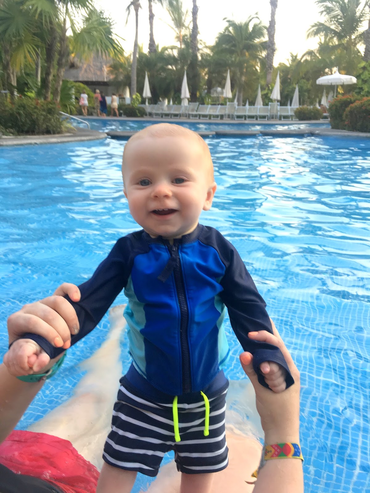 The resort we stayed at was bananas. We had a gorgeous ocean front view right off our room and this tiny little pool on our balcony which the kids thought was pretty sweet. Endless pools, splash pad, wave pools, big slide, lazy rive, sandy beach– on and on and on. So fun for the kids and fun for the grown ups too. The kids were EXHAUSTED every night and they slept hard! If you are going on vacation without your spouse, I highly recommend going with a BUNCH of family members. Everyone was so helpful with my big kids so I could run up to the room and feed Thatcher and give him a good nap.