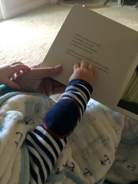 Flaps his arms when he is excited to see me, which is my favorite. He’s more of a mama’s boy than my other children have been and I’m not mad about it. Totally at that stage where he screams when I leave the room. Lights up when dad comes home everyday.