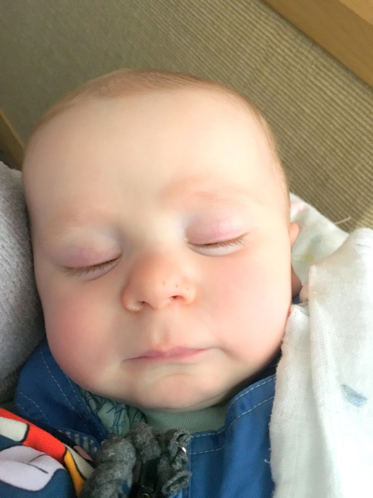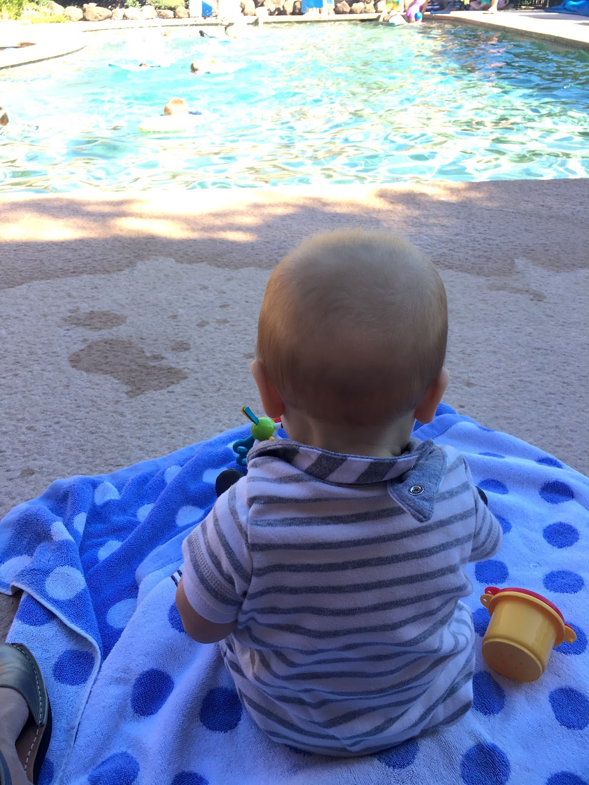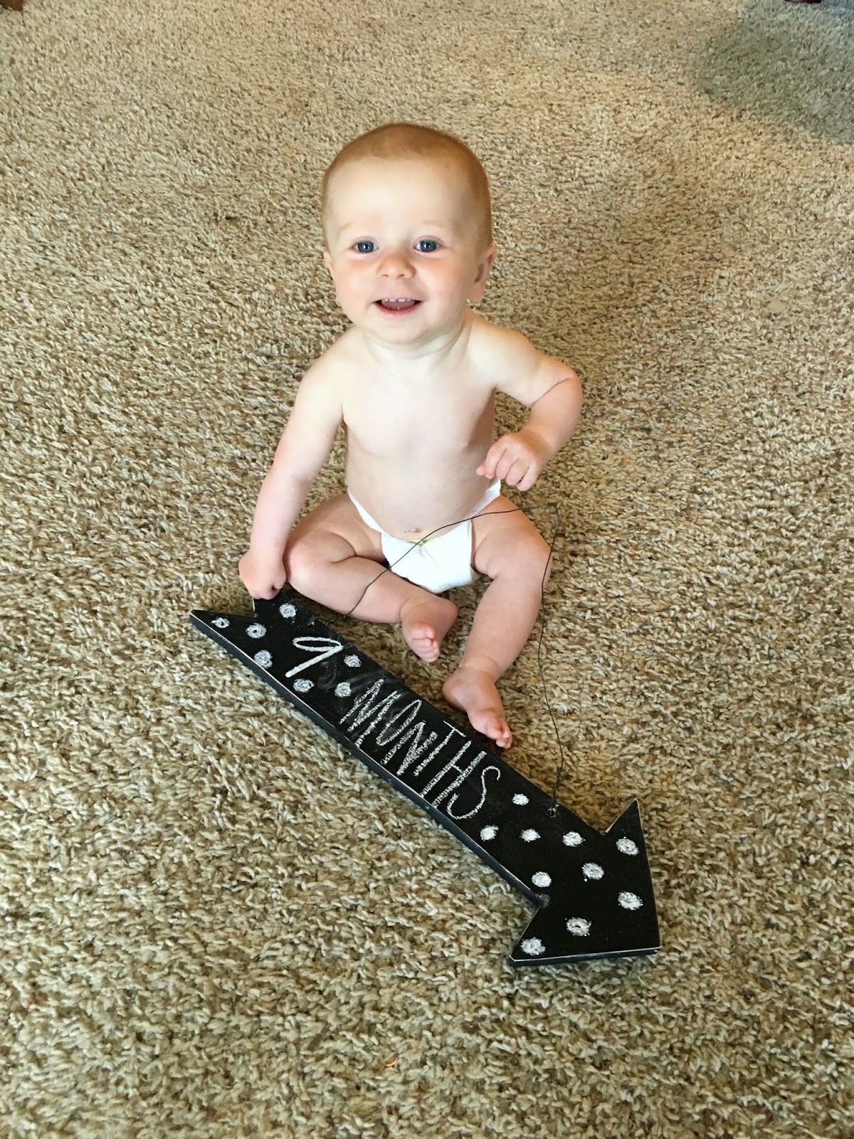 Thatcher is nine months! OH THIS BABY! He just gets cuter and cuter. 16-17 pounds, pretty tall and skinny. Wearing size four diapers, size 9-12 month clothes. Six teeth, just cut his seventh little tooth today. Drooling like a sharpei. His hair is all soft and fluffy and looks pretty light and gingery- which is totally how Linc looked at this age too. He is so fair skinned and has light eyes- all the people in Mexico wanted to touch him. Just walked right up. Rubbed his head and his cheek.